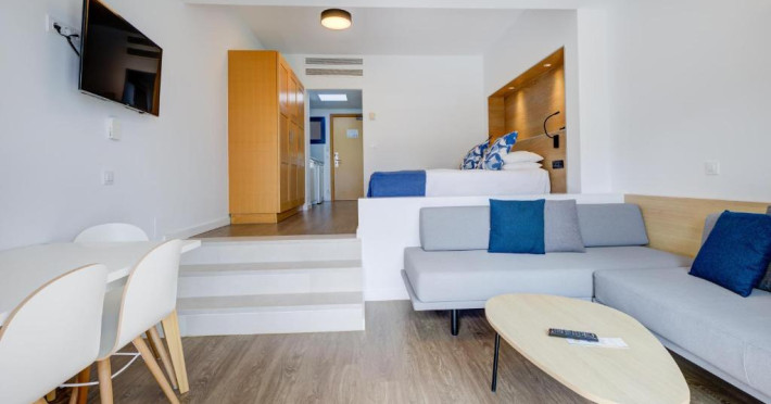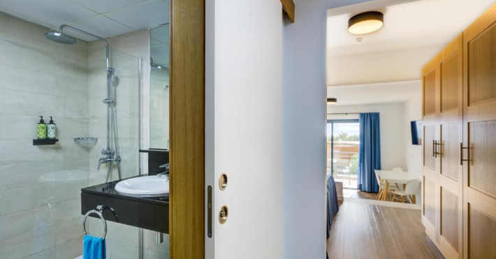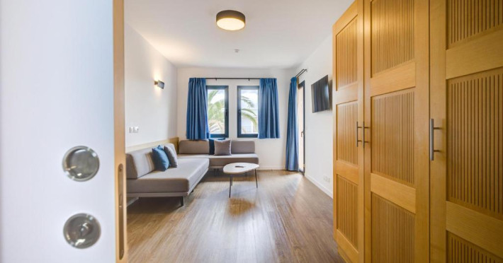 Oferind vedere la ocean sau la grădină, toate unitățile de cazare de la Playitas Aparthotel - Sports Resort au un decor modern, in culori pastelate, și aer condiționat. Livingul este dotat cu o canapea și TV prin cablu, iar bucătăria include frigider, plită, aparat de cafea și prăjitor de paine.
