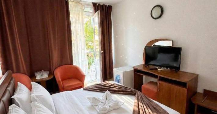 Dotari camere Camerele standard la parter dispun de baie cu dus, televizor, frigider, fara balcon si aer conditionat. Camerele superioare balcon dispun de baie cu dus, televizor, frigider, balcon si aer conditionat. Camerele superioare balcon orientare mare dispun de baie cu dus, teleizor, frigider, balcon si aer conditionat.