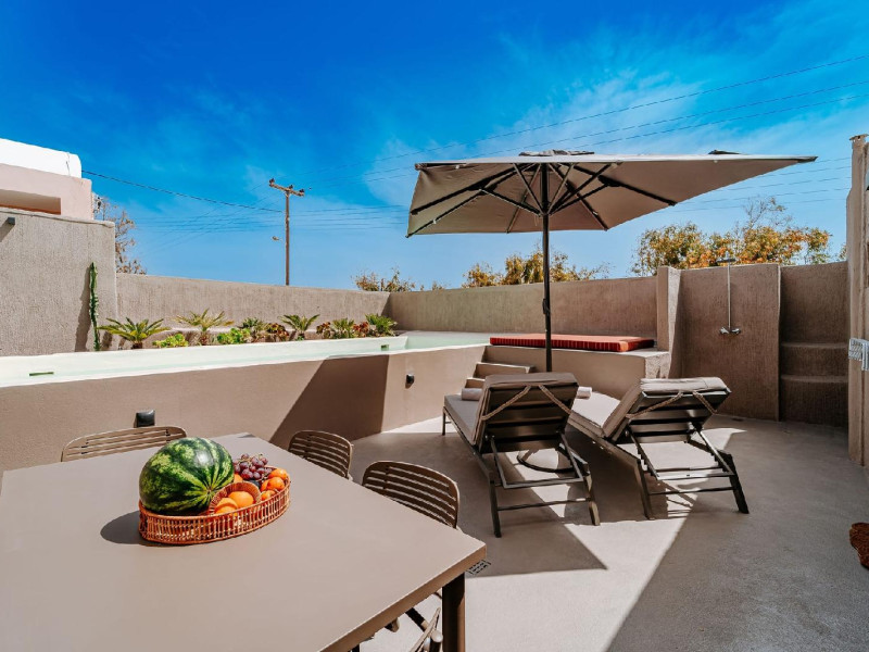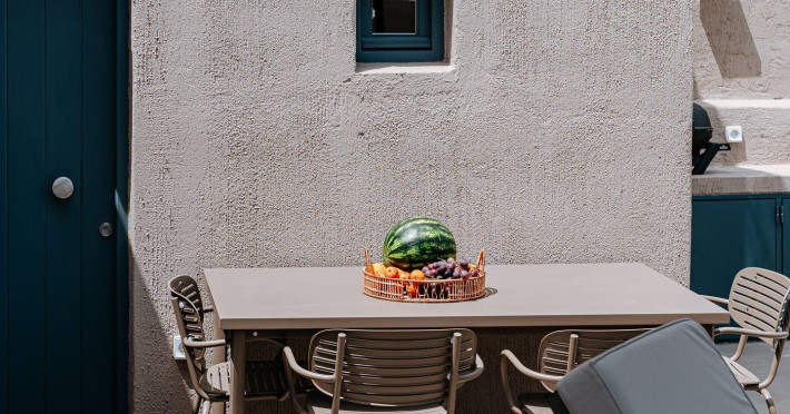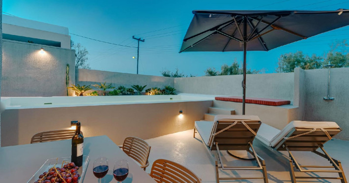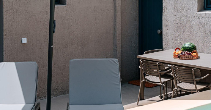 Once a historical house and fully renovated and refurnished in 2022, Present Perfect Villa now welcomes you to its modern facilities, while reserving the rustic traditional feel of the past. In absolute uniformity with the local architecture and respecting the surrounding environment, this villa has 2 bedrooms, a spacious living room area, a fully equipped modern kitchen and two bathrooms. The outdoor area offers a private pool, bbq facilities, outdoor shower, sunbeds and lounge area. The space The first bedroom comes with a queen sized bed and direct access to the outdoor space with the private pool. The second one has a queen size bed and en-suite bathroom. Then, we find the living area which comes with a satellite high-definition TV, two beautiful couches that sleeps 1 more guest, an open plan kitchen, dining area, and all the amenities for a luxurious stay! On the outside, there is a completely private pool and a comfortable lounge area with dining table. chairs, sunbeds. Licence number 00001623595