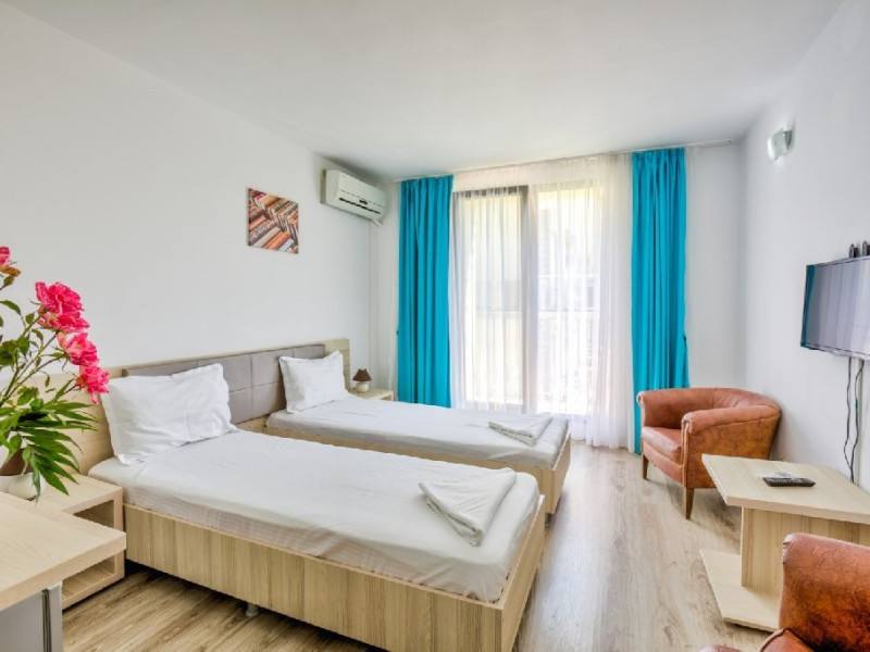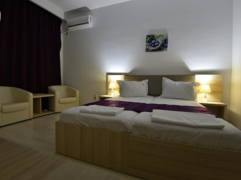 Hotelul dispune de 56 camere duble standard complet renovate. Acestea sunt dotare cu TV LCD, minibar, grup sanitar propriu (dus), aer conditionat, acces internet, balcon, parchet. Maxim: 2 persoane Aer conditionat televizor LCD internet wireless Hotelul dispune de 35 camere duble superioare, dotate cu mobilier nou , TV LCD, minibar, grup sanitar propriu (dus) , aer conditionat, acces internet, balcon, parchet. Maxim: 2 persoane Aer conditionat televizor LCD internet wireless Hotelul dispune de 7 apartamente standard renovate , formate din dormitor si living (canapea extensibila), grup sanitar propriu (dus) , minibar, aer conditionat, balcon, parchet, acces internet. Maxim: 4 persoane Aer conditionat televizor LCD internet wireless Hotelul dispune de 5 apartamente superioare, dotate cu mobilier nou, formate din dormitor si living (canapea extensibila) , grup sanitar propriu (dus) , minibar, aer conditionat, balcon, gresie, acces internet. Maxim: 4 persoane Aer conditionat televizor LCD internet wireless