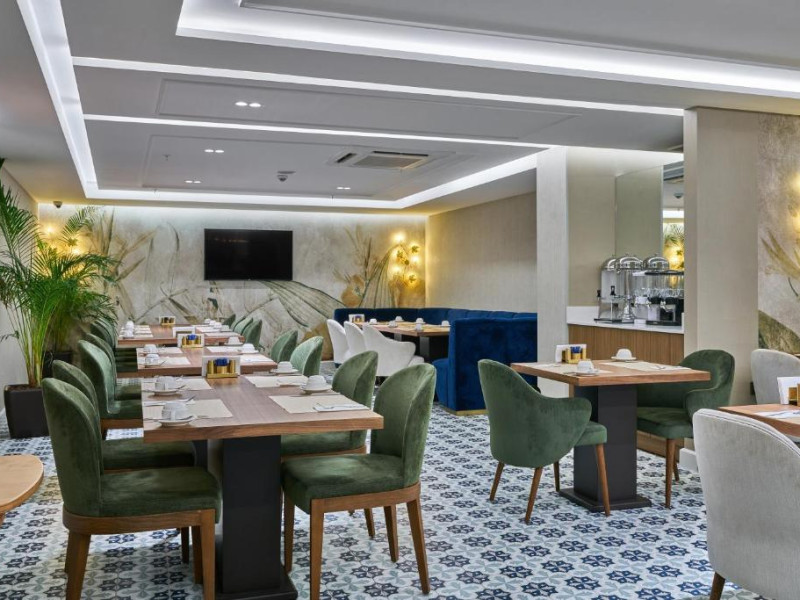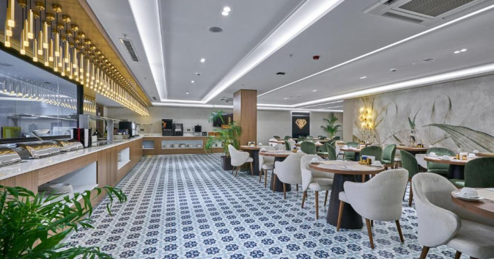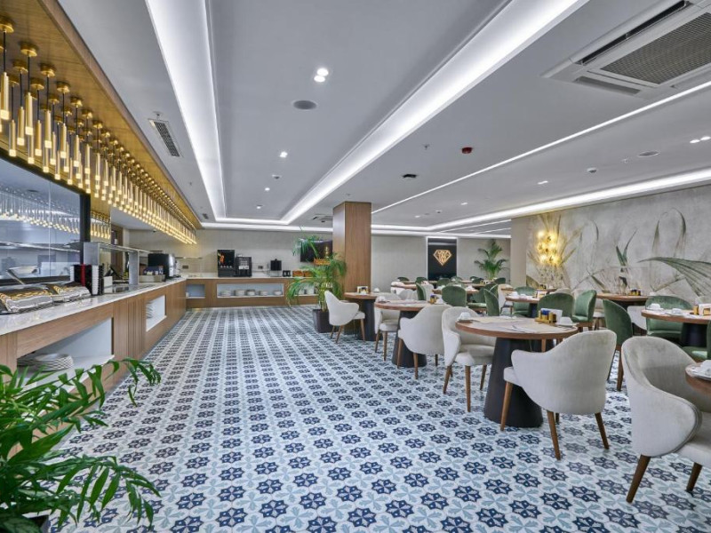 Restaurantul hotelului servește preparate din bucătăria turcească și internațională, iar terasa oferă priveliști spectaculoase asupra orașului vechi. Serviciile premium includ recepție 24/7, room service și asistență turistică pentru organizarea de tururi in oraș.