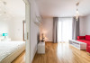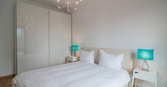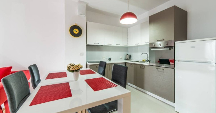 Tipuri de apartamente: - Apartamentul Riviera este alcatuit dintr-un living cu bucatarie open space, dormitor cu pat matrimonial, baie si terasa. - Apartamentul Presidential Suite este alcatuit din doua dormitoare cu pat matrimonial, un living open space cu bucatarie, 2 bai si 2 terase.