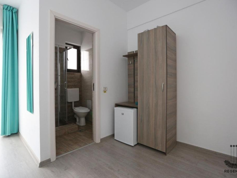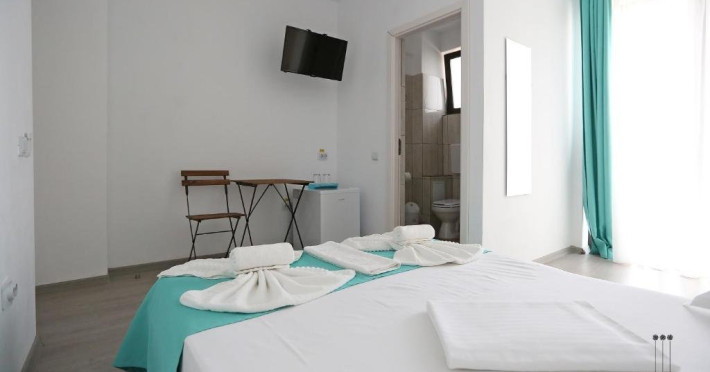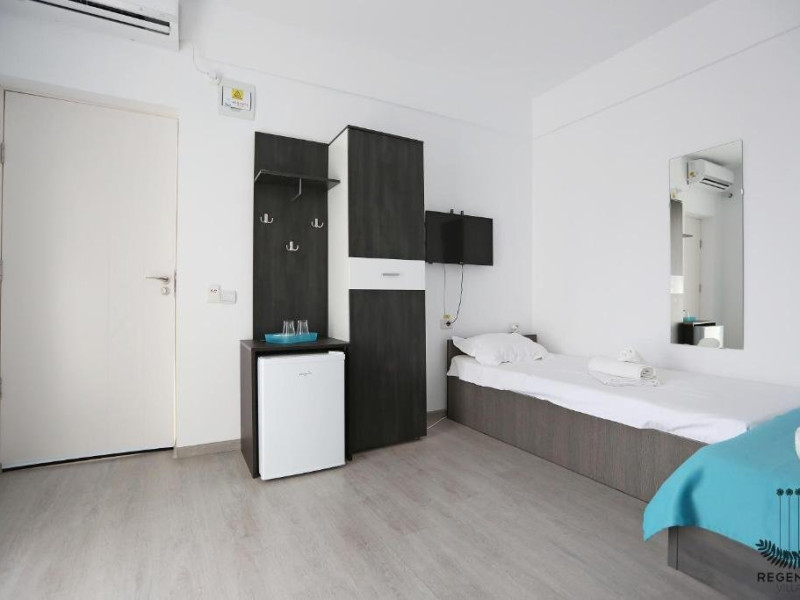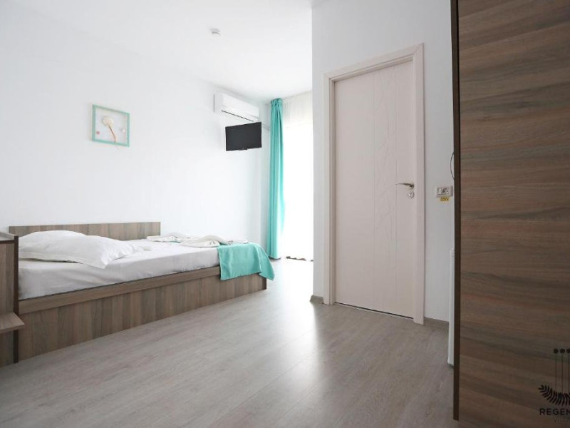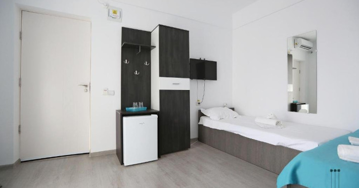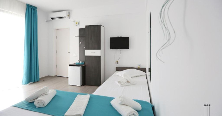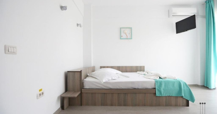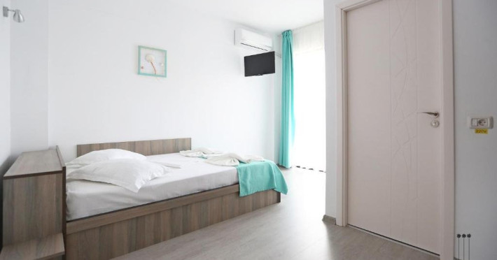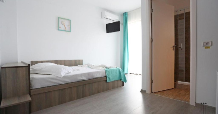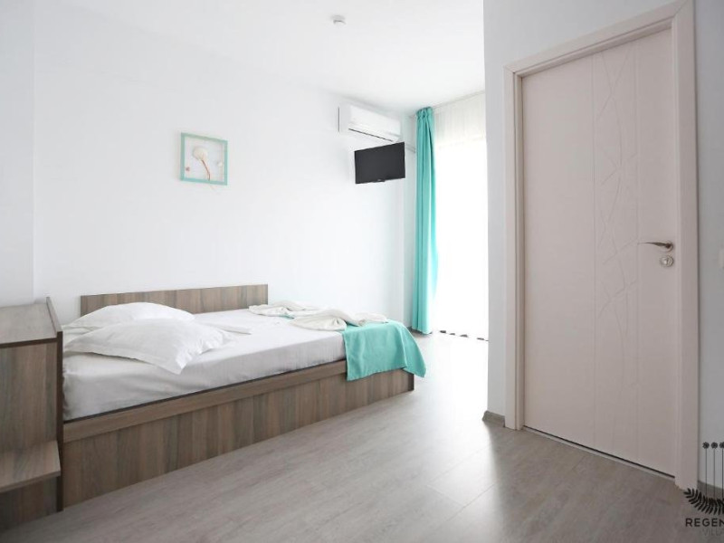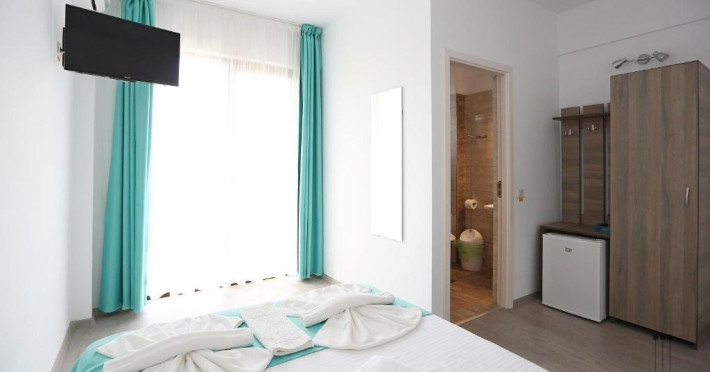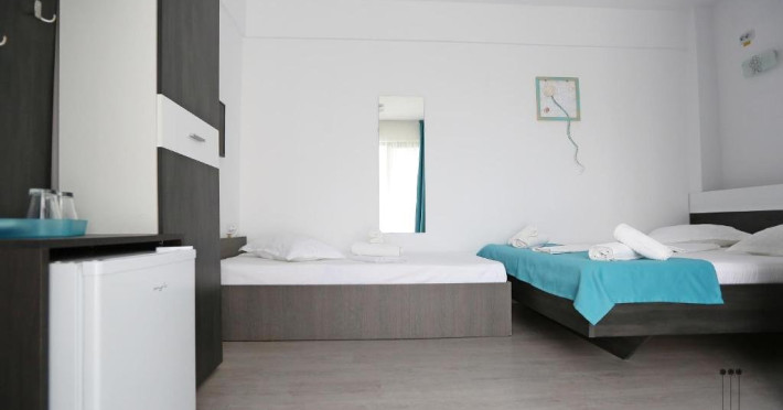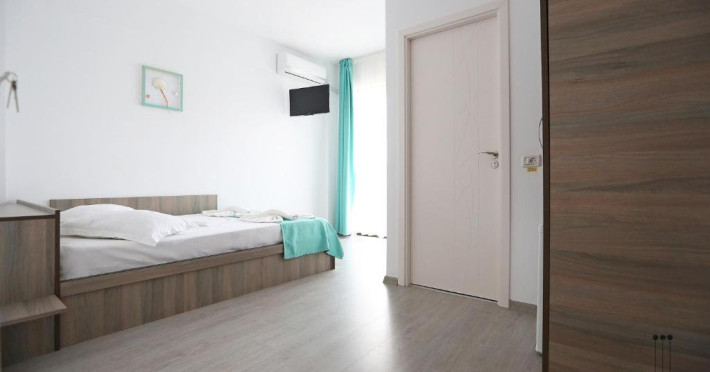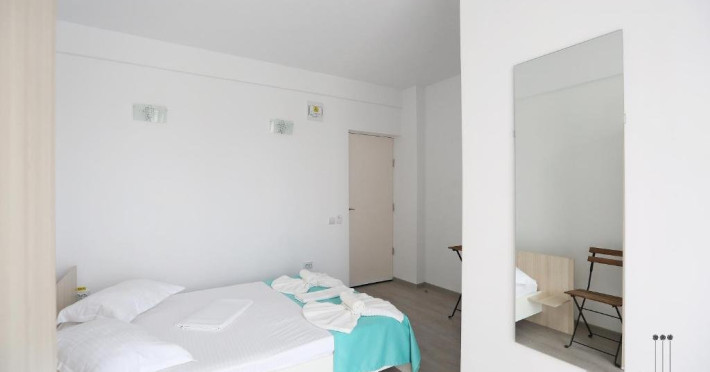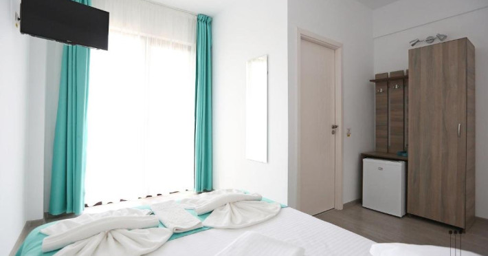 DESCRIERE CAMERE Numar total camere: 31 (22 camere duble cu balcon, 2 camere duble fara balcon, 6 camere triple cu balcon, 1 camera cvadrupla cu balcon) Dotari camere: TV led, frigider, aer conditionat, internet wi-fi, baie proprie, balcon- la majoritatea camerelor.