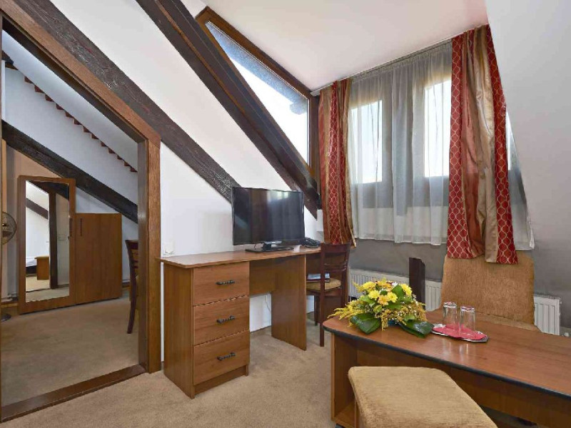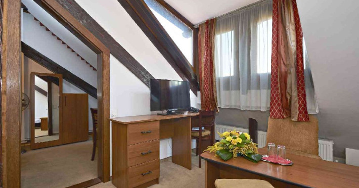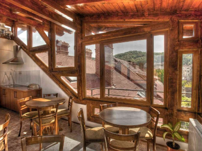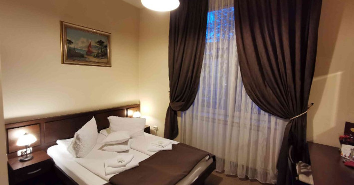 DESCRIERE CAMERE: Unitatea este compusa din 17 camere duble si 9 apartamente (dormitor si living room), bucatarie comuna dotata complet pentru uzul oaspetilor nostri (frigider, plita electrica, filtru de cafea, prajitor, sandwich maker, cuptor cu microunde, vesela si tacamuri) si un salon comun de mic dejun, cu o vedere superba catre Tampa. Toate camerele sunt pentru nefumatori la fel ca si salonul de mic dejun precum si bucataria complet echipata. Micul dejun poate fi oferit optional la un cost suplimentar. Noutatea acestui concept de cazare consta si in preturile deosebit de convenabile (incluzand internet wireless, lenjerie, prosoape si curatenie zilnica). Camerele dispun de: - telefon cu acces intern - televiziune prin cablu - LCD TV - acces internet wireless - radio ceas Apartamentele dispun suplimentar de: - pat matrimonial sau twin - living - 2 televizoare - canapea extensibila