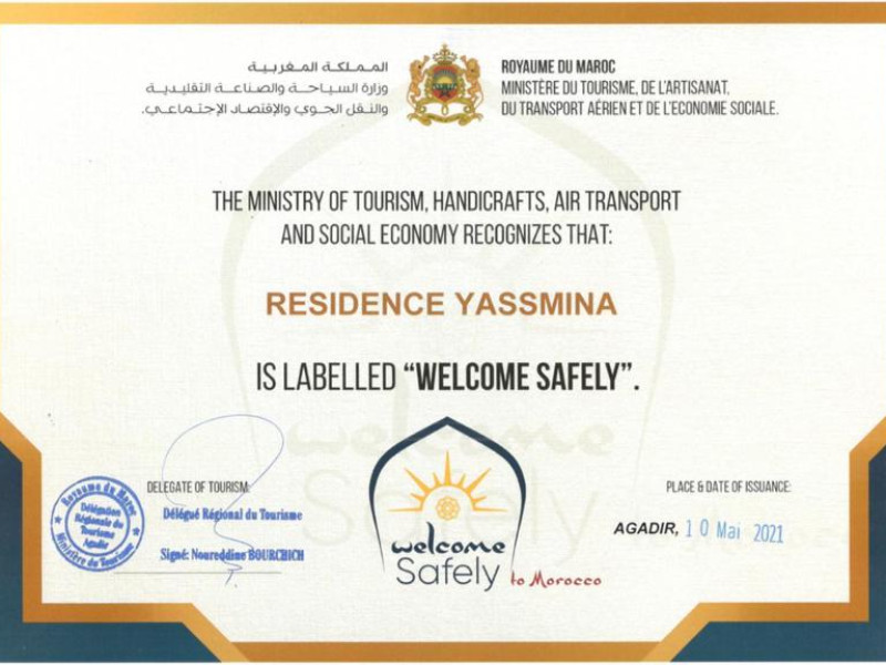 Residence Yasmina Agadir, un complex hotelier modern și primitor din stațiunea marocană Agadir, oferă oaspeților săi o experiență autentică in stil mediteranean. Situat in zona rezidențială a orașului, hotelul se află la doar 300 de metri de plaja cu nisip fin din Agadir, una dintre cele mai frumoase plaje din Maroc.