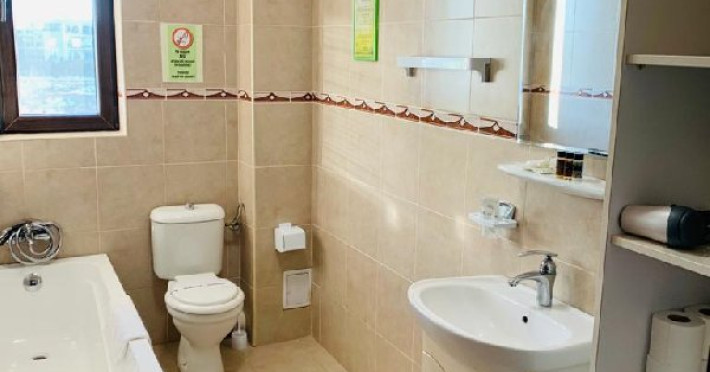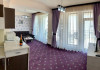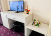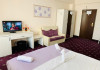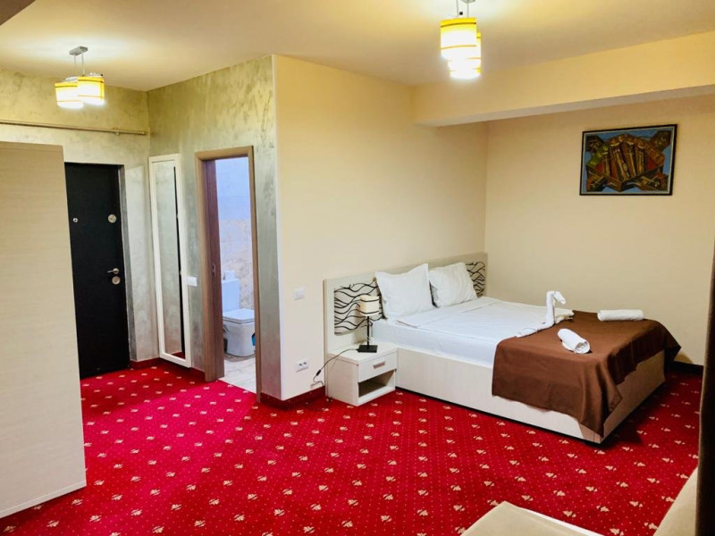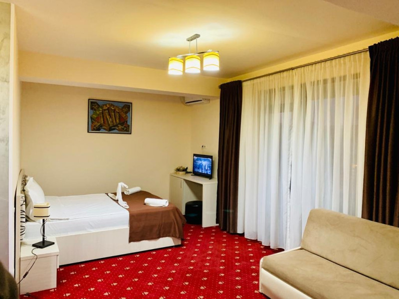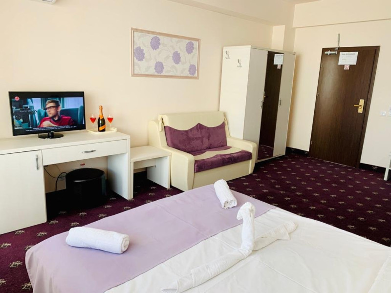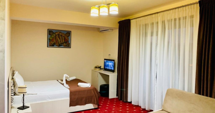 Camerele duble deluxe dotari si suprafata: tv lcd, aer conditionat, mocheta, pat matrimonial 160/200, baile sunt dotate cu cabine de dus si uscator de par, suprafata camerei intre 21-24 mp, anumite camere deluxe sunt dotate cu canapea extensibila.