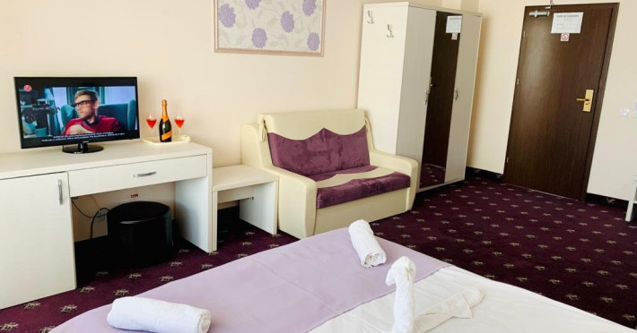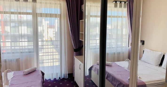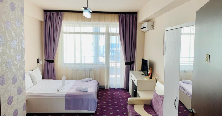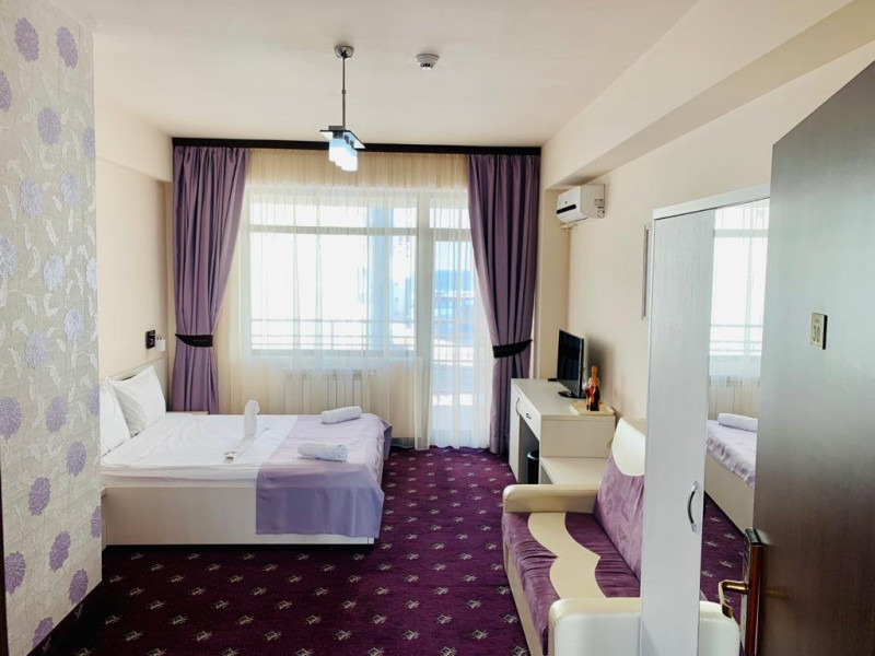 Camera tripla -aceasta este compusa din pat matrimonialsi o canapea extensibila. Garsonierele sunt ideale pentru familii cu copii deoarece sunt dotate cu pat matrimonial, canapea extensibila, chicineta (mobilier de bacatarie, cuptor cu microunde, toaste, aparat de incalzit apa), aer conditionat, tv lcd, suprafata fiind de 28-30mp.