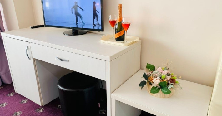 Camerele duble standard dotari si suprafata: tv lcd, aer conditionat, frigider tip minibar, pat matrimonial 160/200, baile sunt dotate cu cabine de dus sau cazi, uscator de par, suprafata camerei este cuprinsa intre 16-18mp.