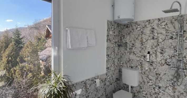 INFORMATII GENERALE Riviera Chalet este localizata pe DN 57 in localitatea Eselnita, zona Cazanele Dunarii, la aproximativ 4 km de sculptura Chipul lui Decebal din Parcul Natural Mraconia. FACILITATI UNITATE Locatia ofera servicii de cazare si se afla la 150 m de Pensiunea Riviera 990 unde turistii pot beneficia, contra cost, de mic dejun si acces la piscina, jacuzzi. In curtea lcoatiei se afla o terasa cu vedere la Dunare. DESCRIERE CAMERE Toate camerele sunt dotate cu TV, baie proprie. LOCALIZARE Pensiunea Riviera 990 este localizata pe DN 57 in localitatea Eselnita, zona Cazanele Dunarii, la aproximativ 4 km de sculptura Chipul lui Decebal din Parcul Natural Mraconia. ATRACTII TURISTICE Riviera Chalet pune la dispozitia turistilor, contra cost, excursii precum: -Tur o ora si 20 de minute-toate obiectivele turistice din cazanele Dunarii (Tabula Traiana, Chipul lui Decebal, Pestera Ponicova, Grota Veterani) -Tur 7 ore Eselnita-Moldova Veche-Insula Cailor Salbatici - vizita insula, toate obiectivele turistice de pe traseu.