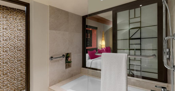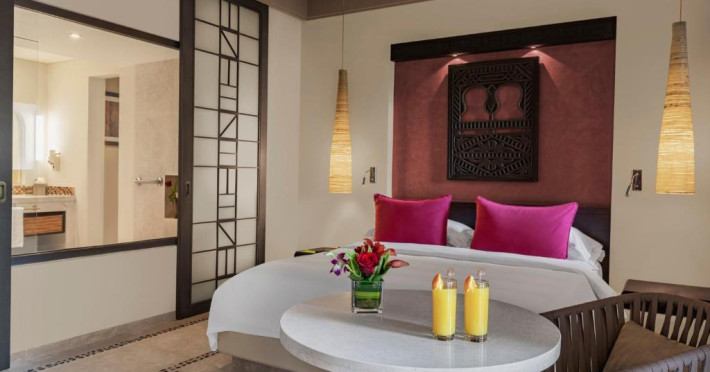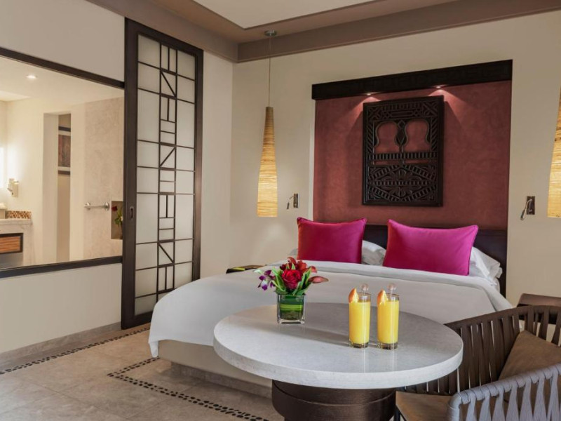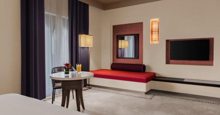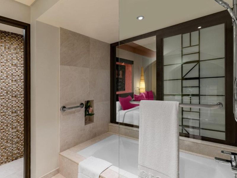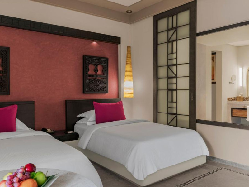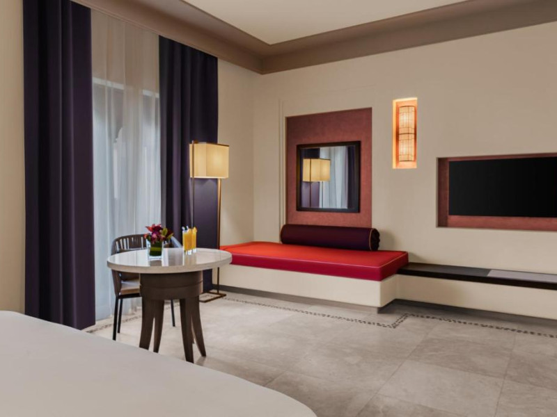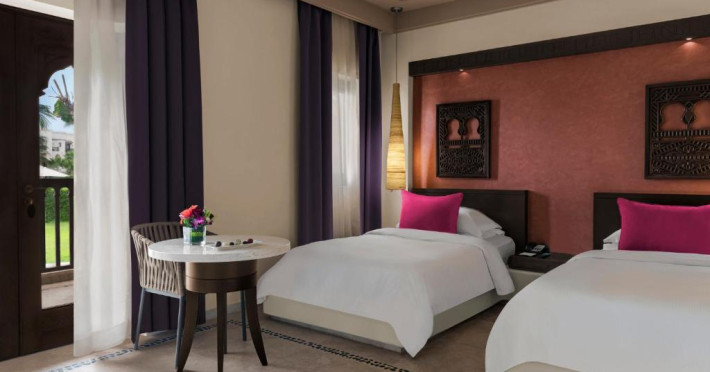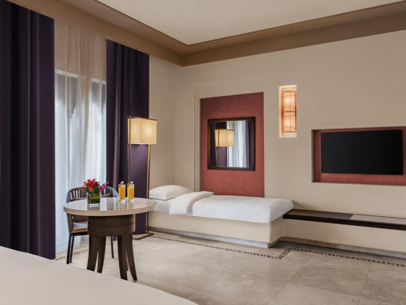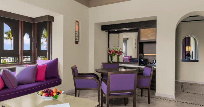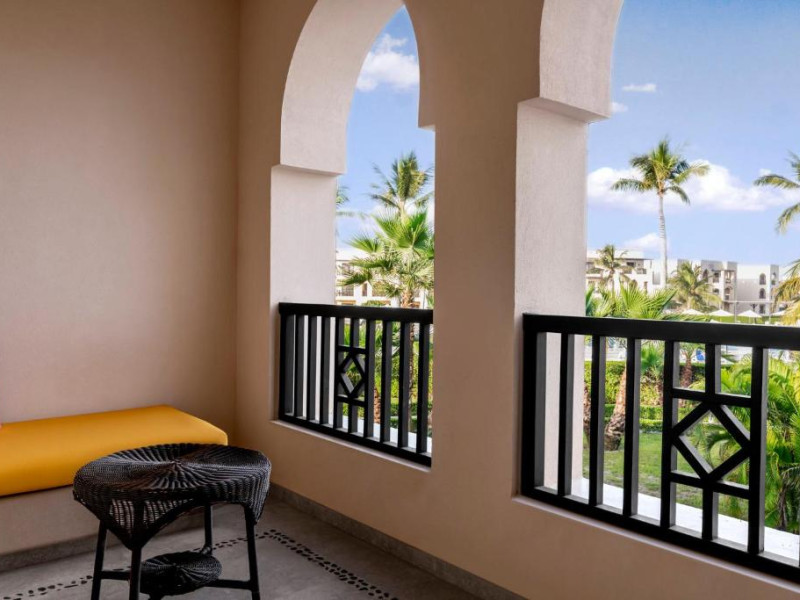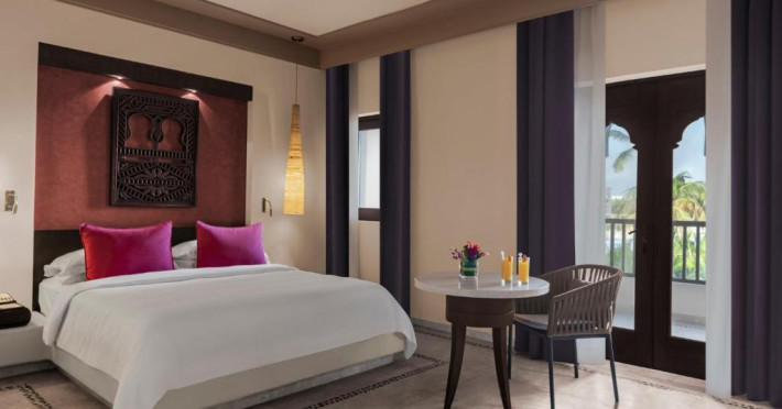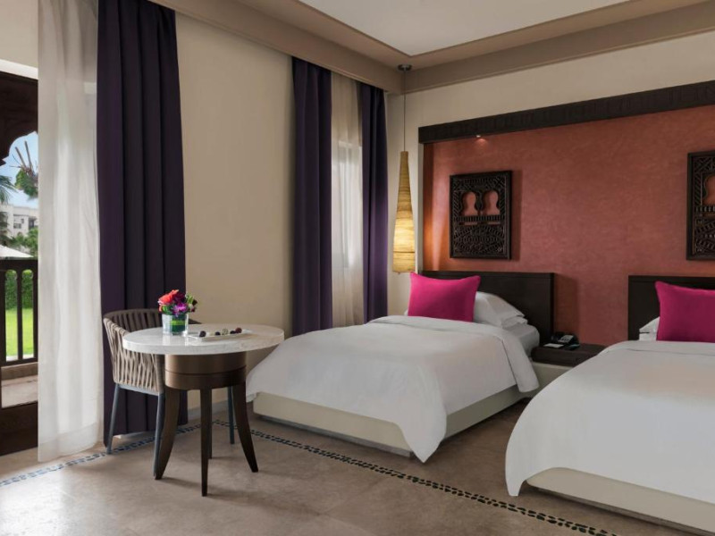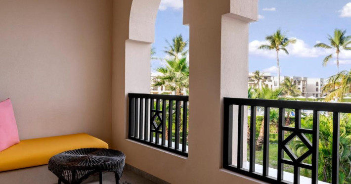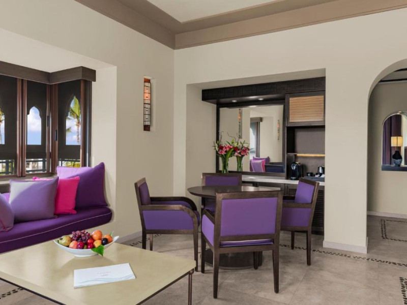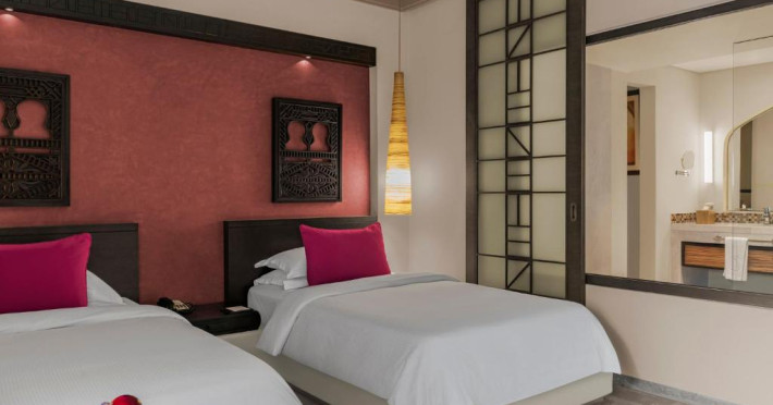 Acest hotel are o arhitectură elegantă de inspirație Oman. Clădirea principală este inconjurată de o serie de grupuri de clădiri care oferă principalele servicii și facilități. Toate camerele au balcon sau terasă cu vedere la ocean, la canal sau la grădină. De asemenea, in camere există TV cu ecran plat, minibar, facilități de ceai și cafea și multe altele.
