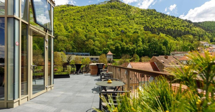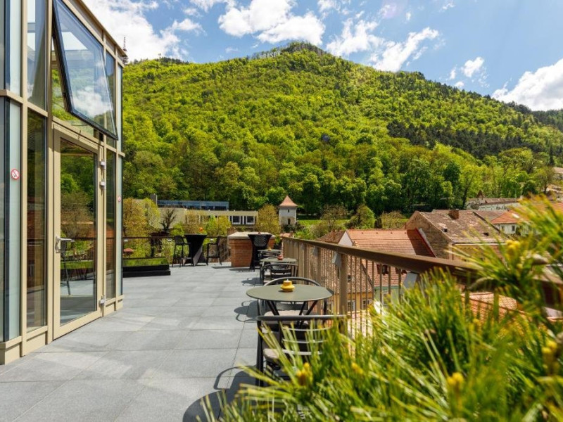 DESCRIERE CAMERE: Dubla standard - 5 camere Dubla executiva - 3 camere Executiva deluxe - 2 camere Premiere suite (apartament 50mp) - 1 camera Junior suite - 5 camere Dubla Twin - 1 camera Camerele de tip execuitva, premiere suite, junior suite dispun de canapea extensibila sau pat single separat de patul matrimonial. Dotari camere: seif, welcome drink, aparat espresso, rulouri protectie solara, birou, incalzire in pardoseala, draperii blackout.