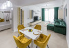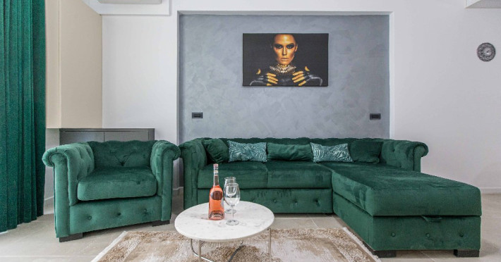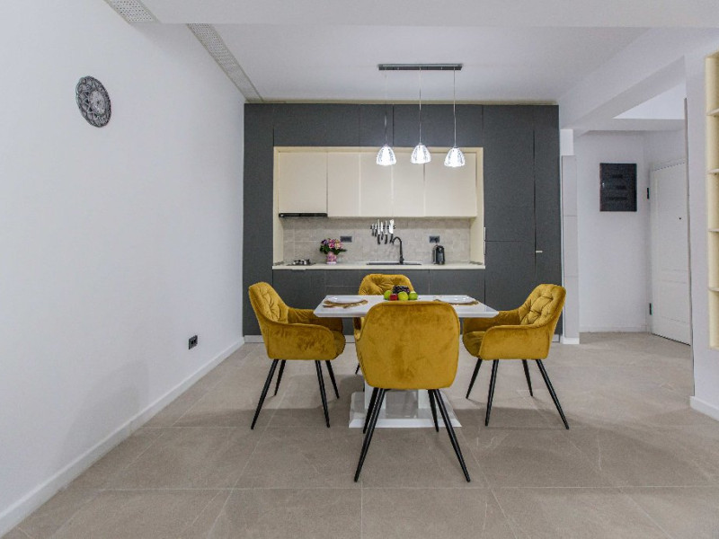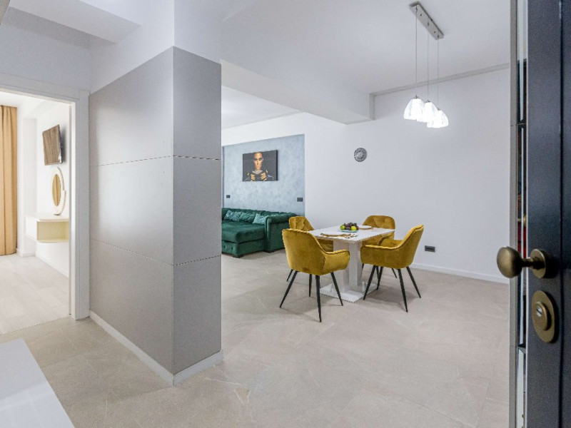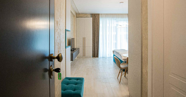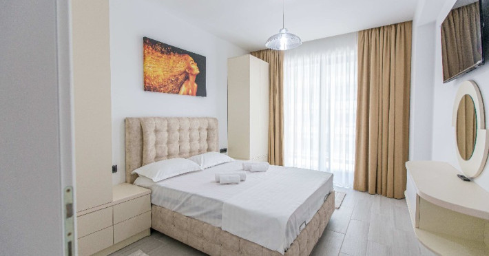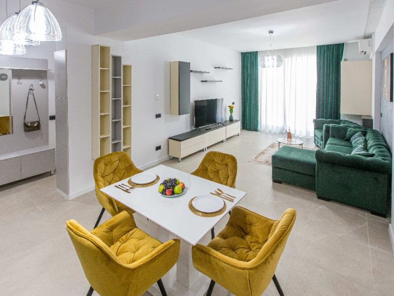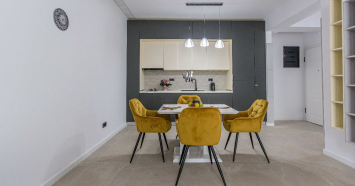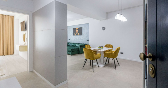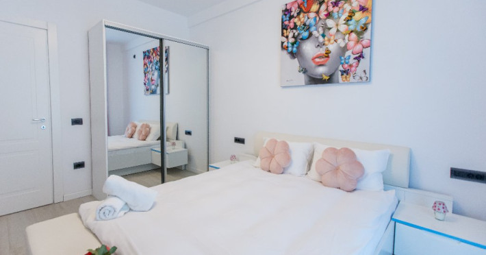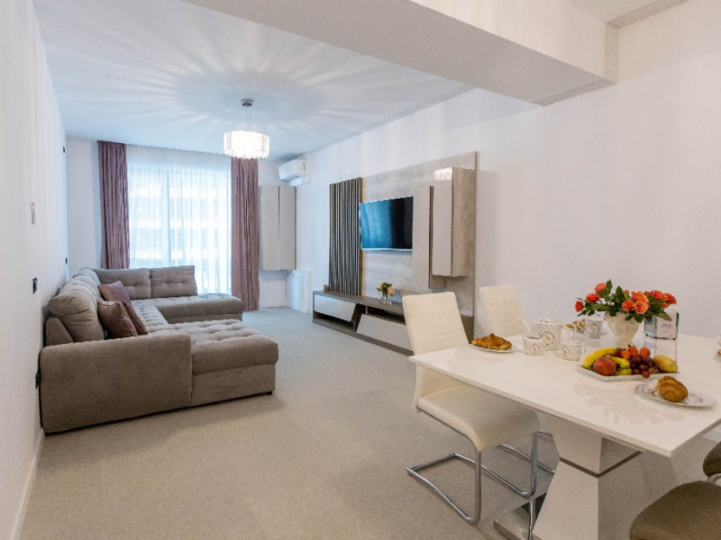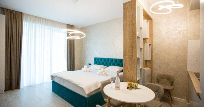 Dotari camere: canale TV Internationale, TV Led- Cablu, Wi-Fi, sistem Smart Home, sistem climatizare, incalzire prin pardoseala, expressor, cuptor cu microunde, masina de spalat vase, frigider, pat matrimonial, sofa extensibila/neextensibila/dupa caz, uscator de par, dus, cada, halat baie, prosoape, papuci, cosmetice, balcon/terasa, cu mobilier (masa, scaune), bucatarie/chicineta utilata. Optional: Pat suplimentar Optional: baby cot