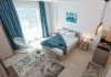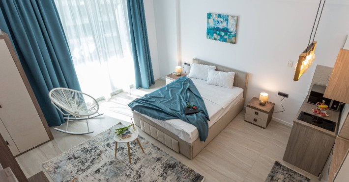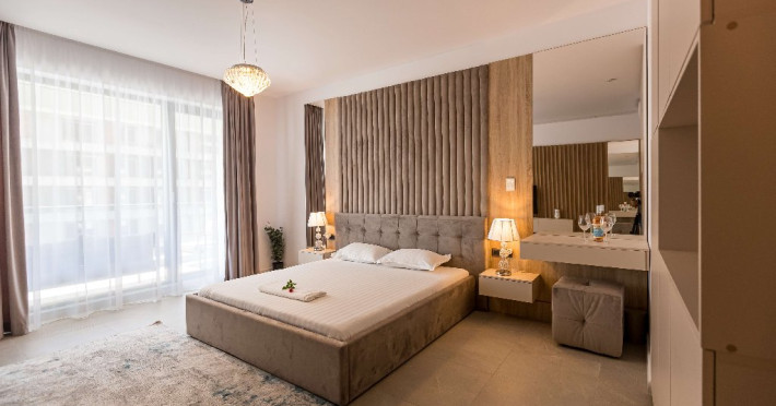 APARTAMENT 2 CAMERE Un apartament cu vedere laterala sau frontala la mare, proiectat inteligent, avand un spatiu generos, design modern si personalizat. Este complet echipat, dispune de sistem Smart Home, mobilier de inalta calitate, oferind confort, functionalitate si rasfat. Pune la dispozitie un living cu spatiu deschis, bucatarie utilata, loc de luat masa si un dormitor, fiind ideal pentru familii care doresc spatiu suplimentar si intimitate. Dormitorul este primitor, cu saltea de inalta calitate si aternuturi din materiale premium, pentru maximum de relaxare i odihna. Camera de zi poate fi o zona de dormit separata pentru copii si poate gazdui pana la doi adulti sau 3 copii. Apartamentele dispun de terase, unde va puteti bucura de briza marii, savurand cafeaua de dimineata sau admirand luna rasarind din mare. Capacitate: Nr. maxim adulti: 4 Nr. maxim copii (0- 9 ani): 2 Suprafata studio: intre 60 si 75 mp