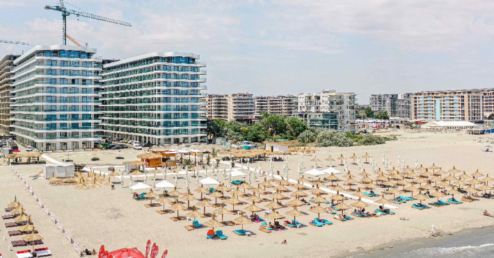FACILITATI UNITATE Dotari generale: Internet gratuit in toate camerele si spatiile din incinta, plaja privata (sezlonguri contra cost), teren de volei / tenis de picior, loc de joaca pentru copii, activitati, divertisment, receptie, departament dedicat - Concierge: rezervari excursii in zona, atractii locale, experiente gastronomice,degustari la crame, rezervari la restaurante, curatenia zilnica a apartamentelor. Acces usor de realizat catre locurile de parcare, gratuite pe toata durata sederii. Locurile de parcare sunt pazite si monitorizate video. Serviciu de transfer aeroport.