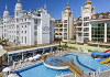 Side Royal Palace Hotel & Spa este un hotel de 5 stele situat în Side, pe malul Mării Mediterane. La aproximativ 700 de metri de plaja Side West, hotelul oferă camere moderne, dotate cu aer condiționat, minibar și TV cu ecran plat. Facilitățile includ două piscine exterioare, o piscină interioară, un centru de fitness și un spațiu de wellness cu saună și baie de aburi. Pentru familii, sunt disponibile un club pentru copii și un loc de joacă. Oaspeții pot savura preparate locale și internaționale la restaurantele hotelului sau se pot relaxa la barurile de pe terasă.