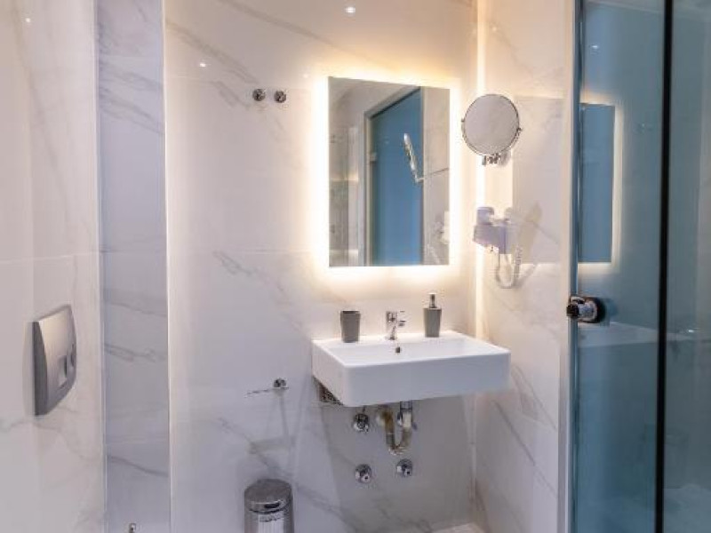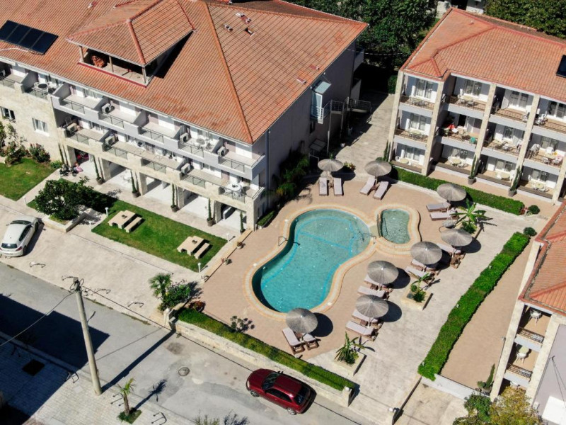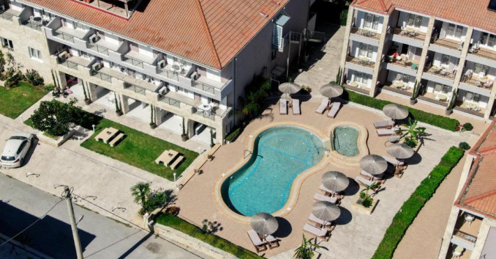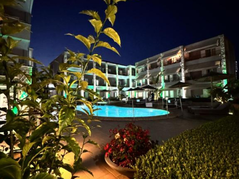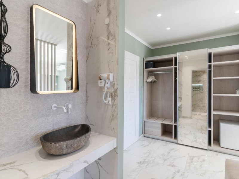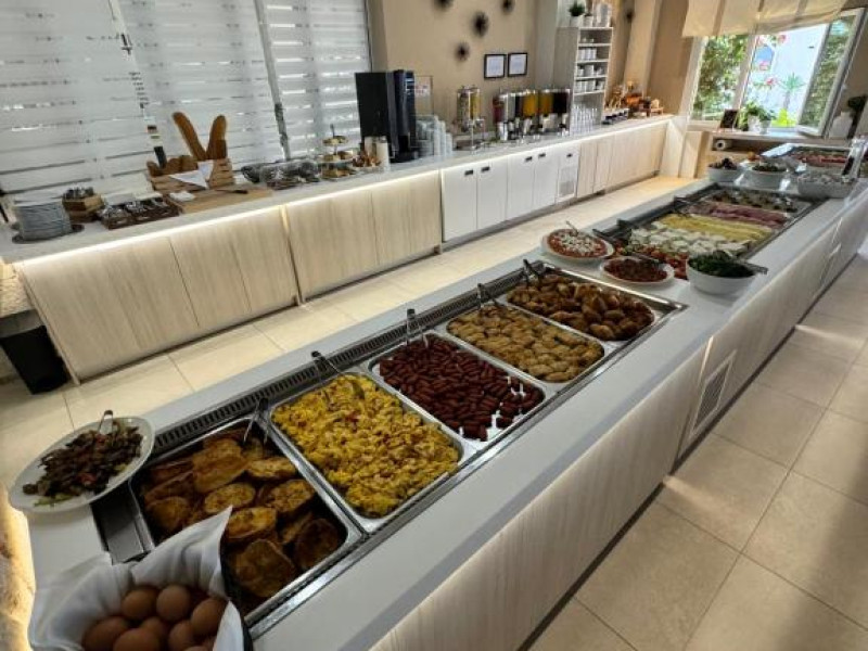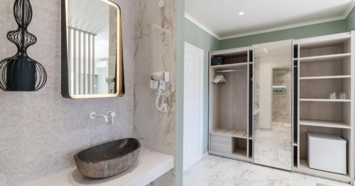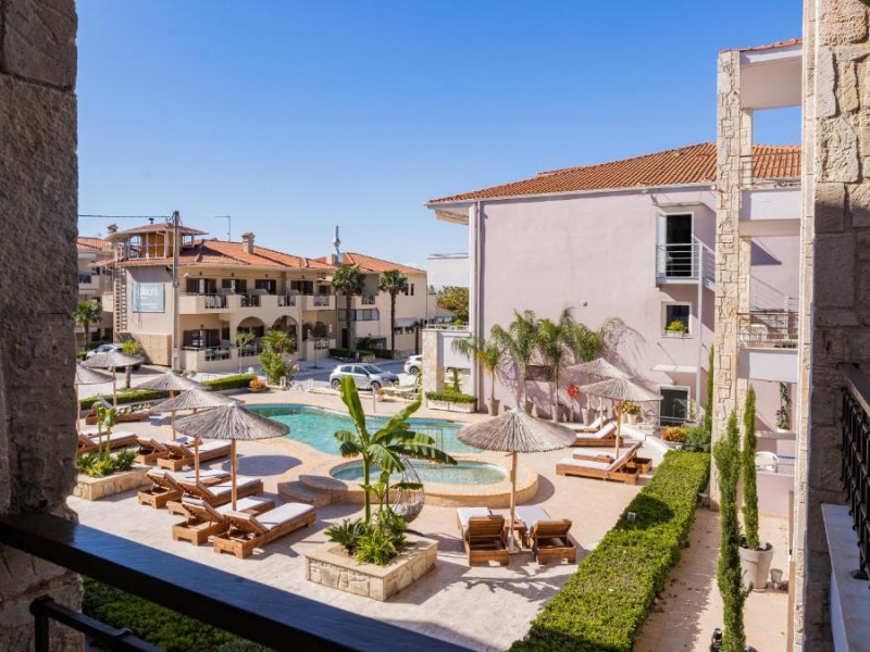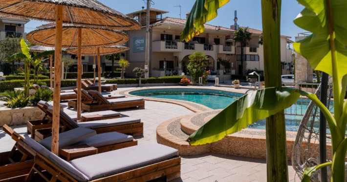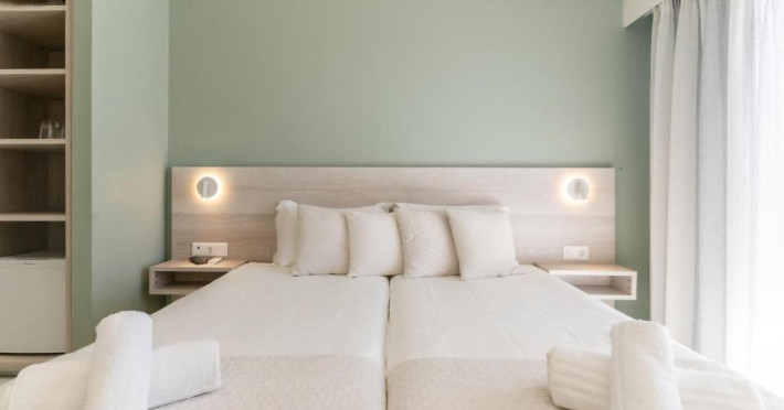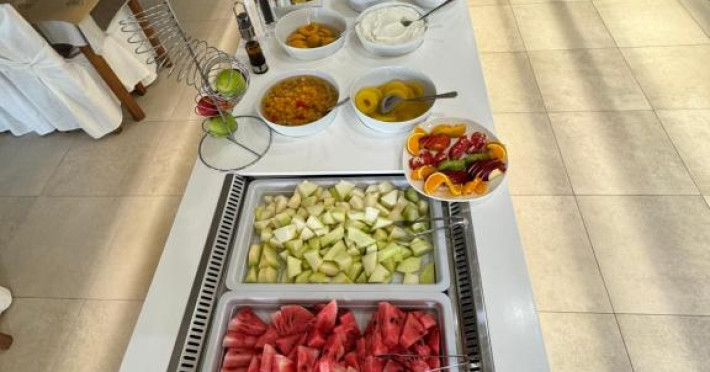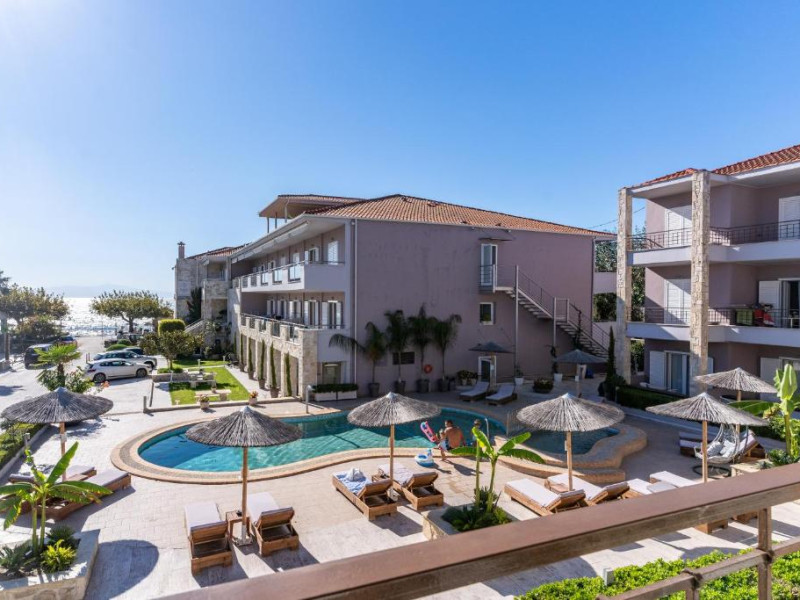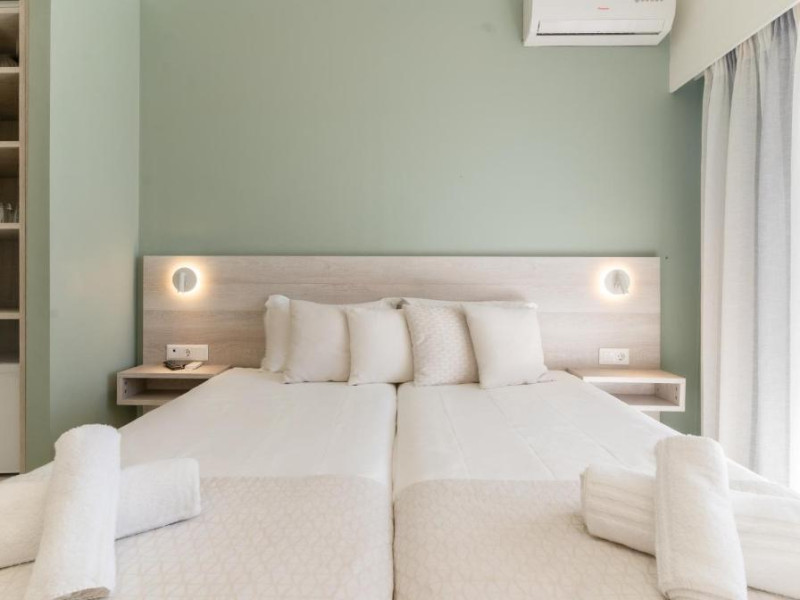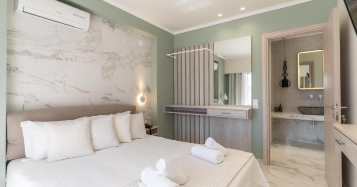 Camerele luminoase și confortabile sunt dotate cu aer condiționat, TV, mini-frigider și balcon, majoritatea oferind priveliști spre Marea Egee. Oaspeții se pot bucura de piscina in aer liber inconjurată de șezlonguri și umbrele, perfectă pentru relaxare.