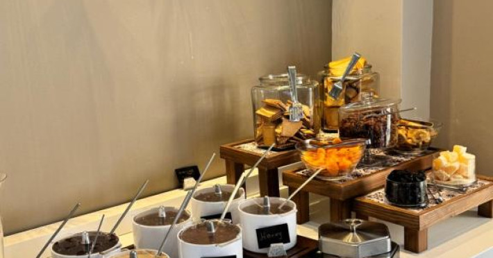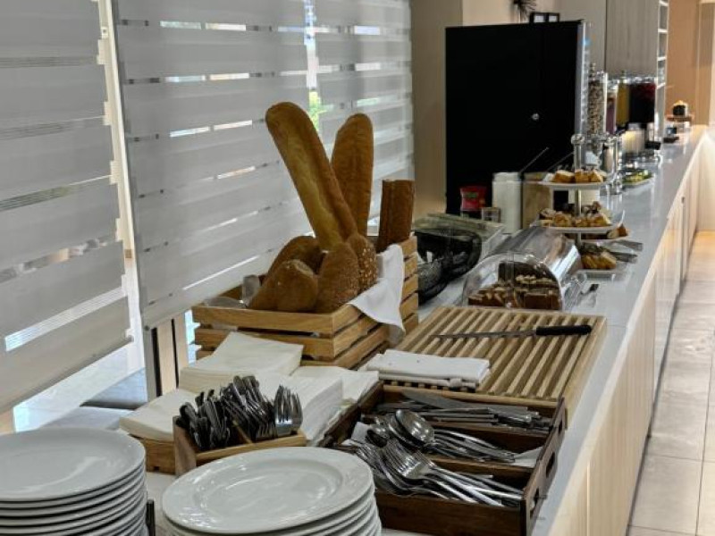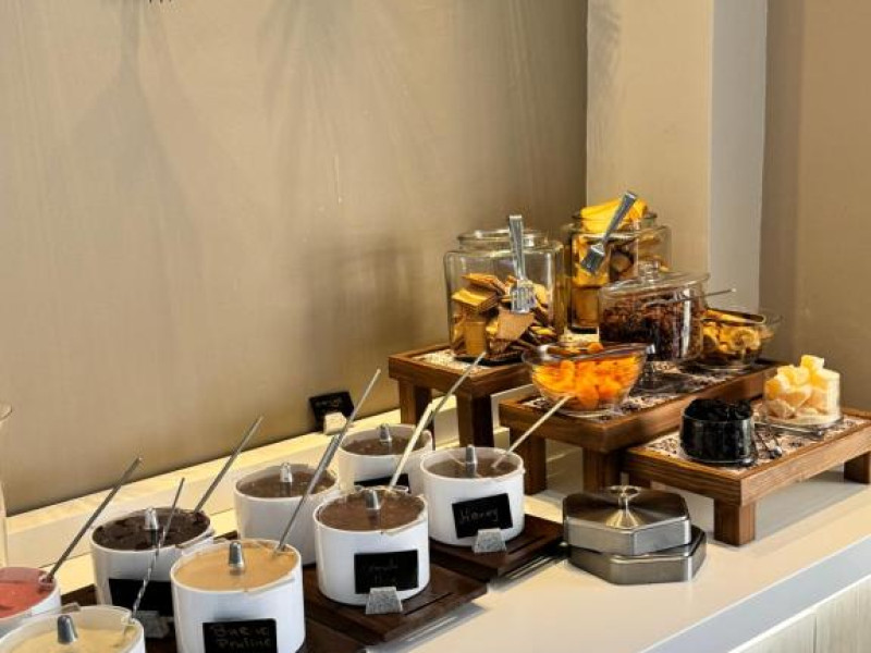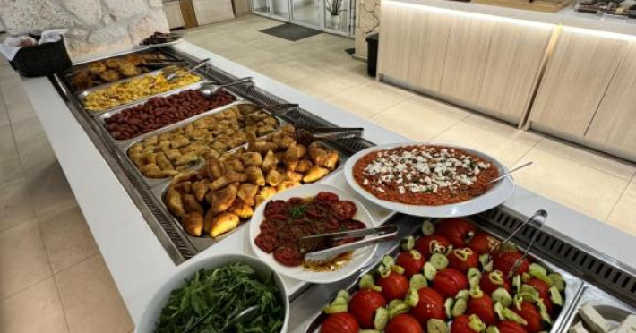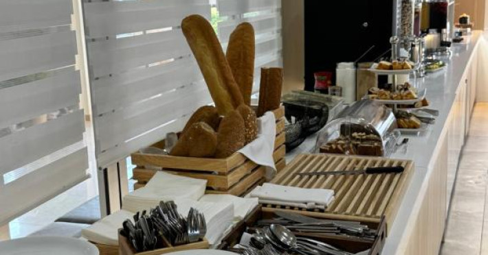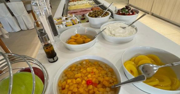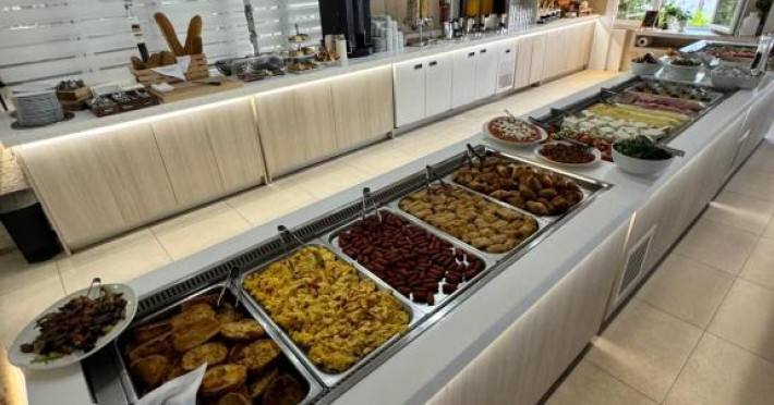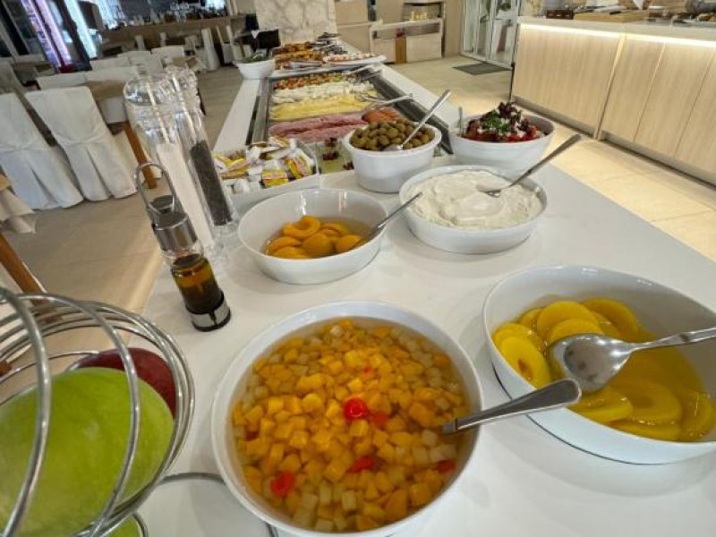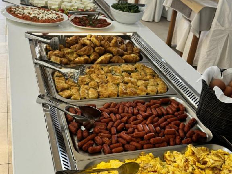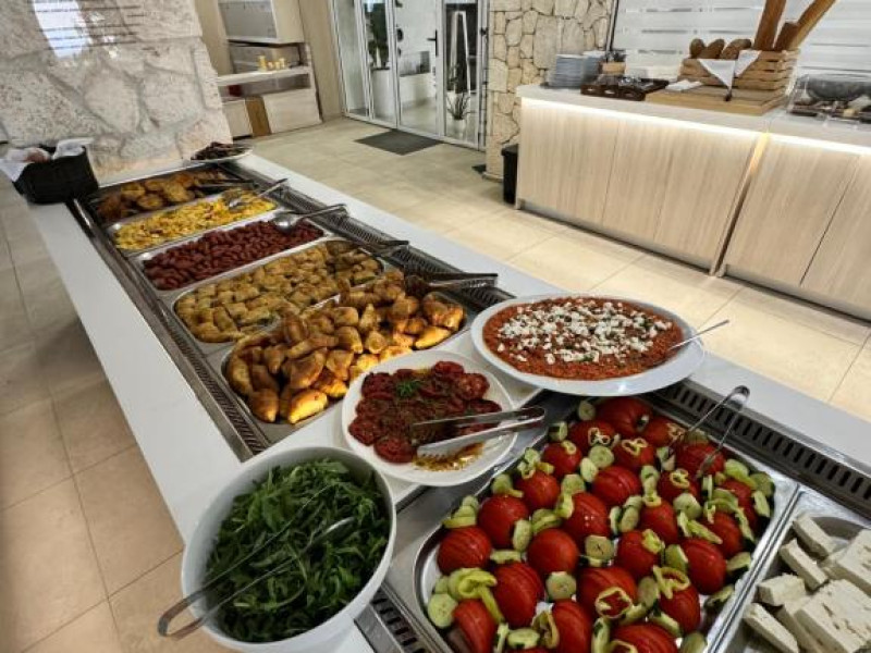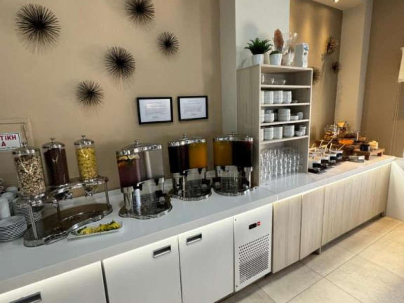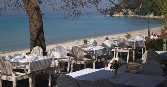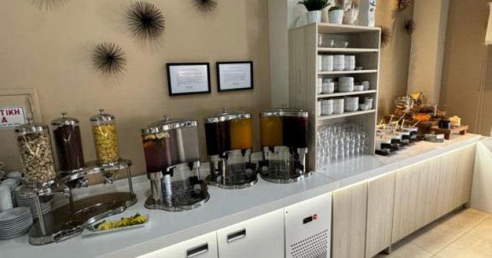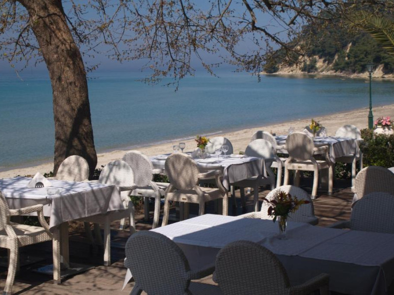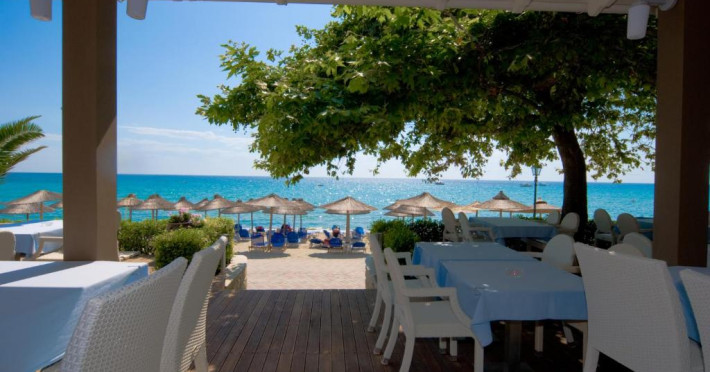 Restaurantul hotelului servește preparate tradiționale grecești și internaționale, iar barul de la piscină oferă răcoritoare și cocktailuri pe tot parcursul zilei. Poziționarea excelentă permite accesul facil la tavernele și magazinele din Siviri, aflate la cateva minute de mers pe jos.
