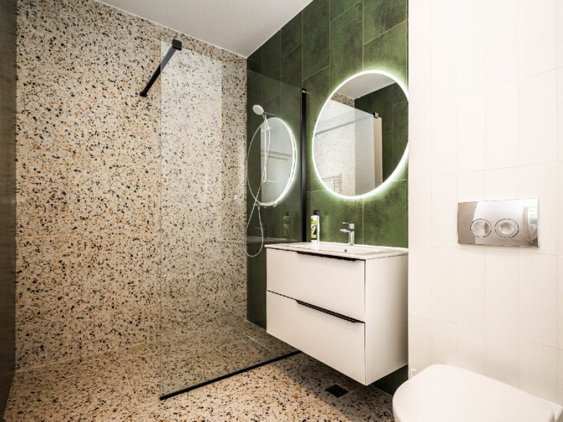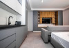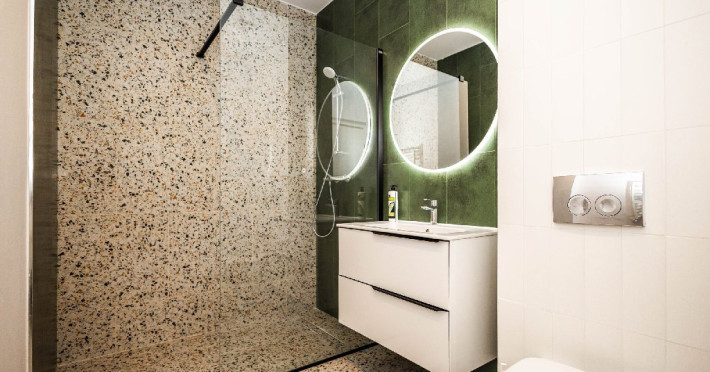 Zona de dormit este echipata cu un pat matrimonial confortabil si o canapea extensibila, oferind astfel pana la 3-4 locuri de dormit. Patul este pozitionat strategic in fata unui TV smart, ideal pentru seri linistite cu filme sau emisiuni preferate.
