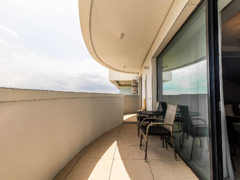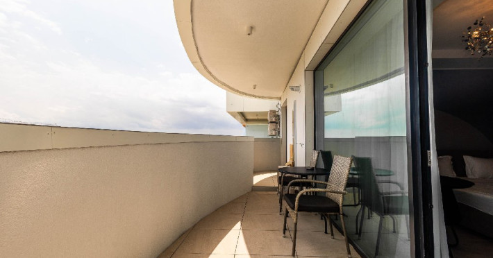 Spatiile de depozitare sunt bine gandite, astfel incat fiecare obiect personal sa isi gaseasca locul, iar atmosfera sa ramana ordonata si aerisita pe toata durata sejurului. Baia moderna este dotata cu dus spatios, masina de spalat si toate accesoriile necesare, asigurand un plus de independenta si confort, mai ales pentru sejururi mai lungi. Iar ceea ce face cu adevarat special acest studio este balconul generos, de unde te poti bucura de o vedere spectaculoasa atat catre mare, cat si catre lac. Aflat in primul rand la mare, studioul ofera o panorama superba si acces rapid la plaja a in doar cativa pasi esti cu picioarele in nisip.