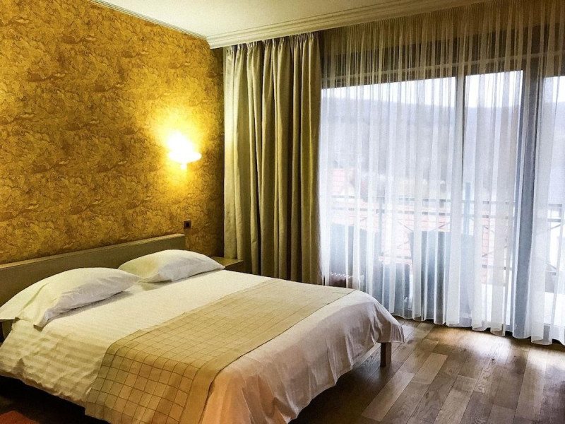 Located only 10 minutes away from the centre of Cluj-Napoca, the hotel welcomes guests with the natural backdrop of the F?get forest, away from hustle and bustle of the town. The bus stop is on the hotels doorstep. The hotel is located only 5 minutes away from the botanical gardens and the Sigma shopping centre, only 10 minutes from the old city, art museum, Iulius Mall and Polus Center shopping centre, and 20 minutes away from Cluj-Napoca International Airport.The hotel provides 50 guest rooms for great accommodation in Cluj Napoca. It is suitable for guests the most discerning tastes and needs, and offers a very attractive restaurant and a summer garden with a terrace. Renovated in 2010, the air-conditioned establishment welcomes guests in a lobby with 24-hour reception and check-out service. Further facilities on offer to guests include a hotel safe, lift access, a newspaper stand and a bar. WLAN Internet access, room and laundry services and a car park provide additional convenience. The conference rooms Cluj Napoca are ideal for business meetings, team-building and training programmes, product launches and corporate presentations, as they are very conveniently equipped with video projectors, projection screens, flipcharts, audio systems, the possibility to connect to a video/DVD player, and Internet access.