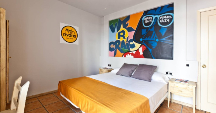Ten Hostel is located right in the center of Ibiza Town, in an urban neighbourhood in the S'Eixample district and in walking distance of the port, the old town and many shops, restaurants and bars. Ferries to Talamanca, Formentera, Figueretas, Playa den Bossa, Santa Eulalia. Supermarket 30m, pharmacy 50m, Taxi stop 50m, Bus stop 50m, beach Playa Talamanca 1.5 km, beach Playa d'en Bossa 2km, beach Las Salinas 6km. Pacha 1.5km, Lio 1.5km. All rooms are equipped with individually controlled air-conditioning and heating, private bathroom, TV and free of charge WIFI Internet connection. A spacious terrace with views of the Santa Crux church and the Plaza Pintor Vicent Calbet are available in some rooms. The reception for check-in and check-out of Ten Hostel l is located at about 15 min (900m) walking distance at the Hotel Ryans Marina.