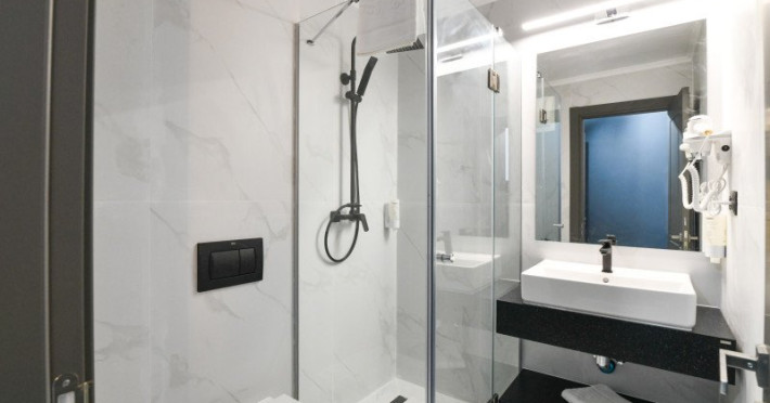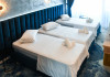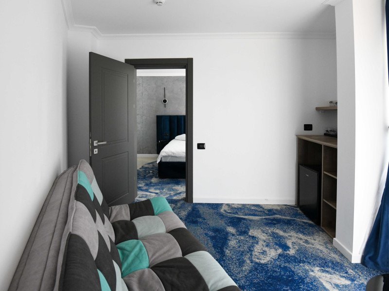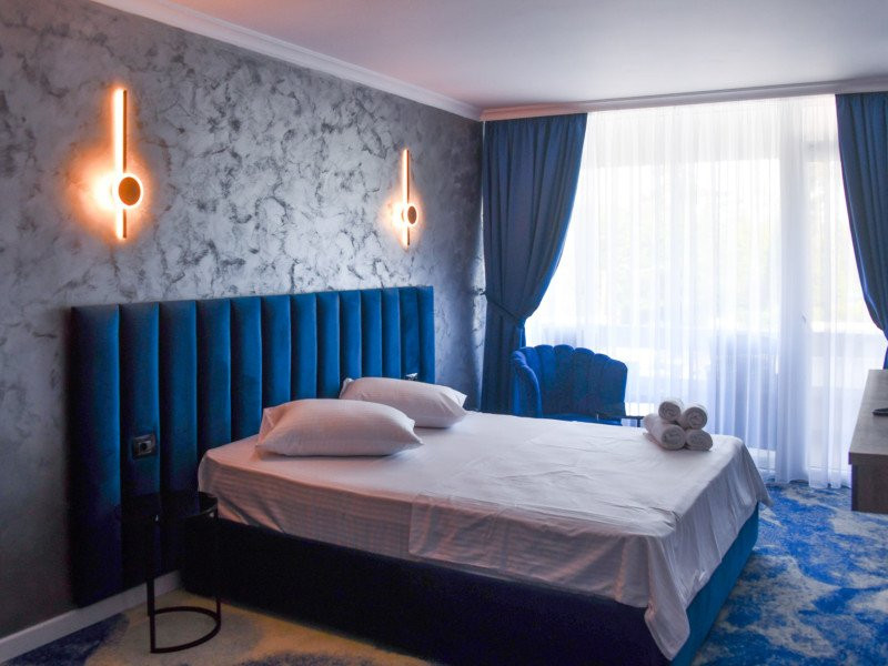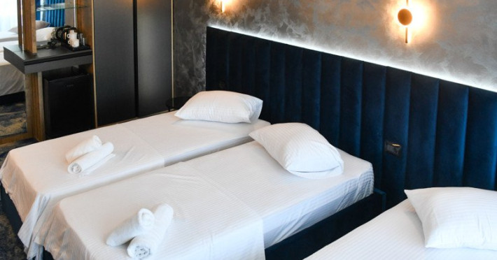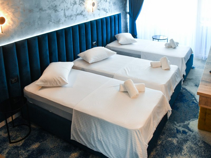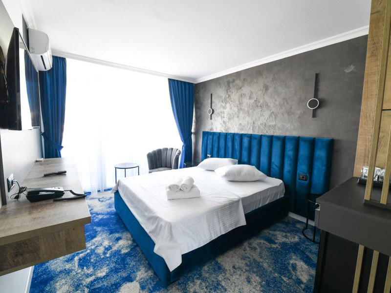 Dotari camere: Camerele duble, cu o suprafata de aproximativ 15 mp, au balcon si au fost renovate integral in 2023, sunt dotate cu pat matrimonial, AC, TV, minibar, internet, baie cu cabina de dus, uscator de par si obiecte de toaleta. Acest tip de camera permite adaugarea unui pat suplimentar pliant de o persoana. Camera poate acomoda 2 adulti si 2 copii (0-5.99 ani) sau 2 adulti si 1 copil (0-11.99 ani). Camere duble cu vedere la mare, cu o suprafata de aproximativ 15 mp, au balcon si vedere spre mare, avand aceleasi dotari si facilitati ca si camerele duble. Camerele triple, cu o suprafata de aproximativ 18 mp, sunt mai spatioase si au in dotare 3 paturi de o persoana din care 2 paturi se pot uni, au balcon si au fost renovate integral in 2023, AC, TV, minibar, internet, bai cu cabina de dus, uscator de par si obiecte de toaleta. Camera poate acomoda 3 adulti. Apartamente cu camere comunicante (cu sau fara vedere la mare), sunt compuse dintr-un living cu canapea extensibila si dormitor cu pat matrimonial, intre dormitor si living exista usa separatoare. Au balcon si au fost renovate integral in 2023, detin AC, TV, minibar, internet, baie cu cabina de dus, uscator de par si obiecte de toaleta. Apartamentul poate acomoda 4 adulti. Apartamente cu camere decomandate (cu sau fara vedere la mare), sunt compuse din doua dormitoare cu pat matrimonial, fiind separate printr-o usa, o singura baie cu dus si un mic living. Au balcon si au fost renovate integral in 2023, detin AC, TV, minibar, internet, uscator de par si obiecte de toaleta. Apartamentul poate acomoda 4 adulti.