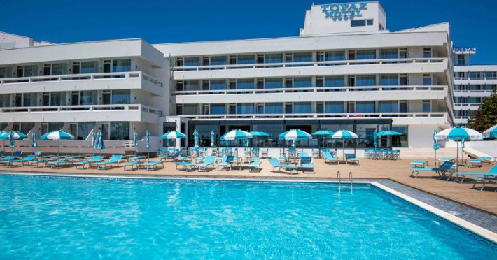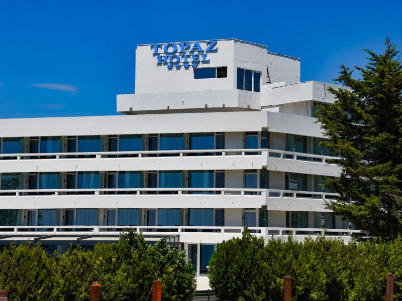 HOTEL TOPAZ, renovat integral in 2023 si reclasificat la 4 stele, este situat pe promenada statiunii Cap Aurora, structurat pe 4 etaje si parter, fiind deservit de doua lifturi moderne. Dispune de bar la parter si o piscina exterioara amenajata cu sezlonguri, cu o panorama minunata spre plaja si mare. Hotelul pune la dispozitia turistilor o parcare privata, gratuita in limita locurilor disponibile. Nu se accepta animale de companie.