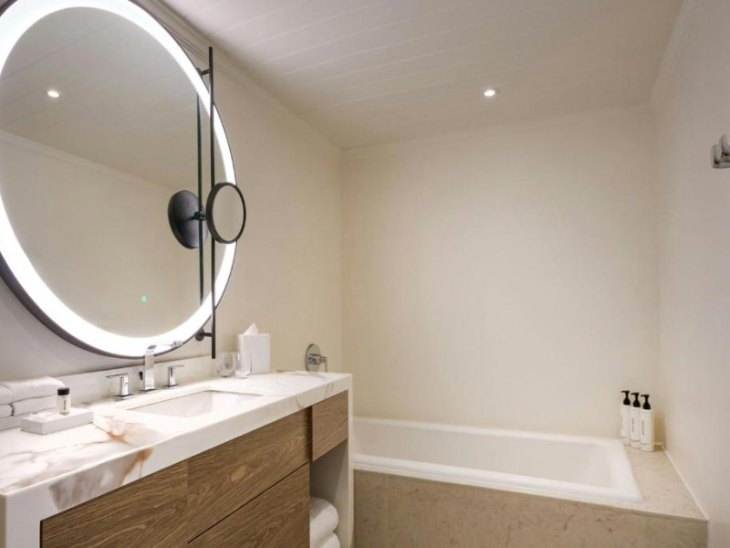 Fiecare suită este dotată cu aer condiționat și include un televizor cu ecran plat, o zonă de relaxare și o baie spațioasă cu duș, cadă și toaletă.