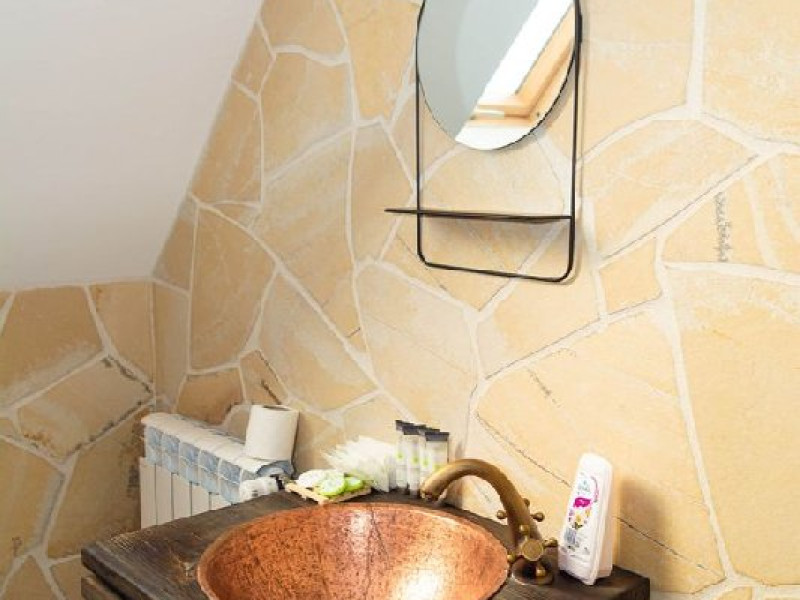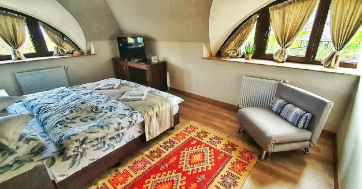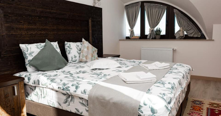 In cele 3 odai din a patra casuta elementele traditionale se imbina cu cele moderne, fiind dispuse pe 2 etaje (una la parter si doua la mansarda). La parter mai este si o camera de zi cu semineu, frigider si espressor in care va puteti retrage pentru cateva momente de relaxare. Fiecare camera dispune de baie proprie si TV.Nici aceasta casuta nu dispune de WiFi.