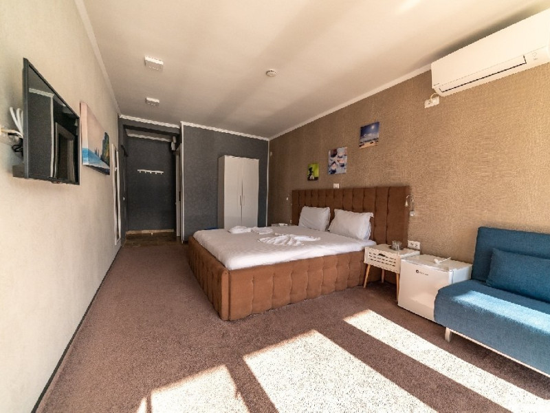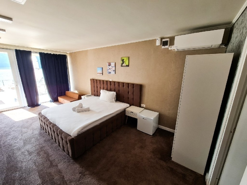 La 100 m se afla Vella Yachting Club, locul unde magia peisajului spectaculos se imbina perfect cu oportunitatile de relaxare si distractie. Fie este vorba de o zi linistita pe plaja sau o seara plina de energie, clubul ofera tot ce este nevoie pentru o experienta memorabila. Pentru relaxare, zona wellness pune la dispozitia turistilor acces la piscina interioara, sauna, jacuzzi, salina, masaj. Turistii se pot bucura si de petrecerea timpului liber intr-un mod memorabil, la bordul unui yacht. Aceste facilitati sunt oferite contra cost. DESCRIERE CAMERE Camere duble au o suprafata de pana la 26 mp si ofera o priveliste spectaculoasa. In camera family cu scara interioara, patul matrimonial este situat in partea superioara a cemerei, accesul se face pe scara interioara iar la baza incaperii este situata o canapea extensibila. Piesa de rezistanta a acestui tip de camera in VELLA 2 o reprezinta jacuzzi privat situat in baconul privat al camerei astfel incat oaspetii se pot bucura de un rasfat indiferent de sezon si vremea de afara. LOCALIZARE VELLA se zareste chiar de la intrarea in Dubova, zona Clisura Dunarii. ATRACTII TURISTICE Sculptura in piatra a lui Decebal,Tabula Traiana (care consemneaza inceputul drumului suspendat al lui Traian pe teritoriul Daciei), Schitul Mraconia, Cazanele mici, Cazanele Mari, Grota Veterani, Pestera Ponicova, Turnurile cetatii Trikule, Manastirea Sf. Ana,Parcul natural Portile De Fier. POLITICI Nu se accepta accesul cu animale de companie. SERVICII DE MASA Nu se poate asigura masa la unitatea de cazare. FACILITATI COPII Unitatea este destinata exclusiv adultilor. FACILITATI EVENIMENTE La 100 m se afla Vella Yachting Club unde se pot organiza evenimente festive.