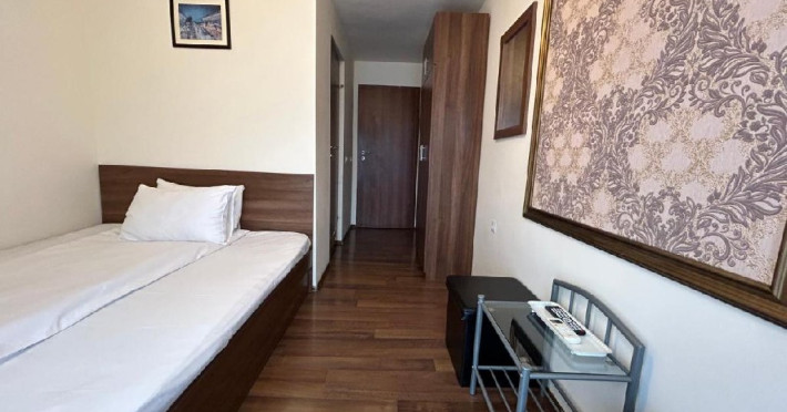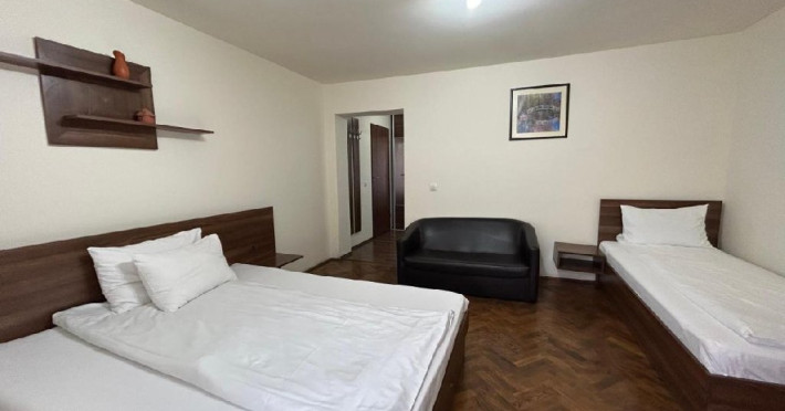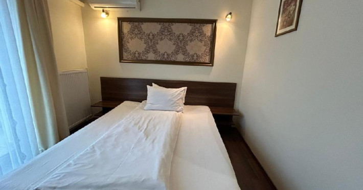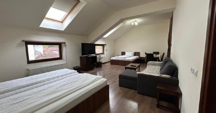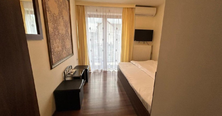 DESCRIERE CAMERE: Camere cu baie proprie, televizoare LCD, internet wireless, sala de servit mic dejun, bucatarie complet echipata. Camera dubla cu pat matrimonial (capacitate maxima) 2 adulti si 1 copil pana la 3 ani inclusiv daca doarme in pat cu parintii. Camera twin (doua paturi de 1 persoana) se accepta maxim 2 adulti, fara copii indiferent de varsta. Camera tripla este formata din 1 pat matrimonial si 1 pat de o persoana, se accepta maxim 2 adulti si 1 copil SAU 3 adulti. Studio cu bucatarie proprie (cu 2 paturi matrimoniale) se accepta maxim 4 persoane, de regula 2 adulti si 2 copii SAU 3 adulti si 1 copil SAU 4 adulti. Trebuie sa se tina cont ca este o singura incapere cu 2 paturi matrimoniale.