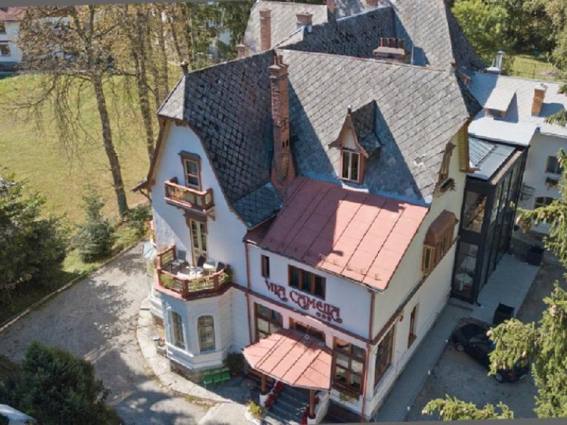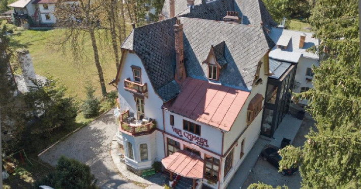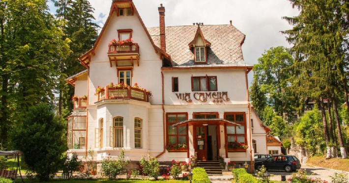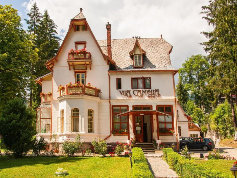 INFORMATII GENERALE Vila Camelia este situata in apropiere de Castelul Peles din Sinaia. DESCRIERE UNITATE DE CAZARE Construita in 1884 de unul dintre arhitectii Castelului Peles, Vila Camelia are influente bavareze, cu amenajari bogate si accesorii caracteristice din lemn. Vila imbina eleganta istorica cu facilitati moderne, oferind o atmosfera calda si intima. Camerele pastreaza farmecul de epoca, iar oaspetii se pot bucura de gradina frumos amenajata sau de restaurantul care serveste preparate traditionale. FACILITATI UNITATE Hotelul pune la dispozitia turistilor restaurant, parcare, internet Wi-Fi. DESCRIERE CAMERE Camera dubla standard este dotata cu un pat matrimonial sau doua paturi twin. Camera dubla superioara este mai spatioasa decat cea standard si dispune de doua paturi twin sau un pat matrimonial. Suita include doua dormitoare separate. Apartamentul dispune de doua dormitoare, un living separat unde se afla o canapea extensibila si o chicineta. Toate camerele dispun de TV, telefon, internet Wi-fi si baie proprie. LOCALIZARE Vila Camelia este situata in apropiere de Castelul Peles din Sinaia. ATRACTII TURISTICE Muzeul Peles, Pelisor, Manastirea Sinaia, Muzeul Bucegi, Cazinoul Sinaia, Casa Memoriala George Enescu. POLITICI Nu se accepta animale de companie. SERVICII DE MASA Mesele se servesc in restaurantul propriu. FACILITATI COPII Se poate adauga maxim un pat suplimentar in camera dubla standard pentru copiii cu varste de pana la 12 ani. FACILITATI EVENIMENTE Vila ofera o sala de conferinta cu o capacitate de aproximativ 20 locuri.