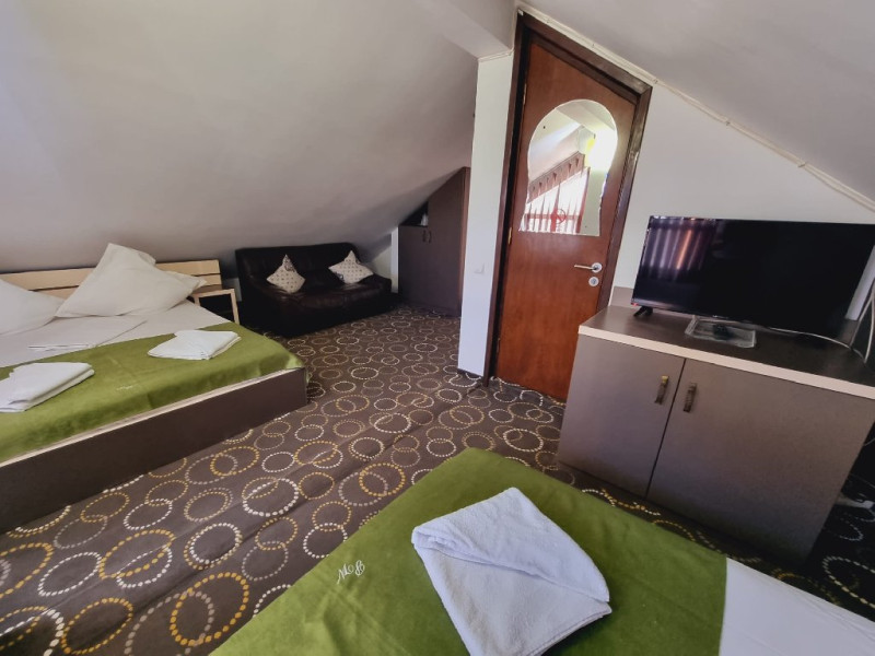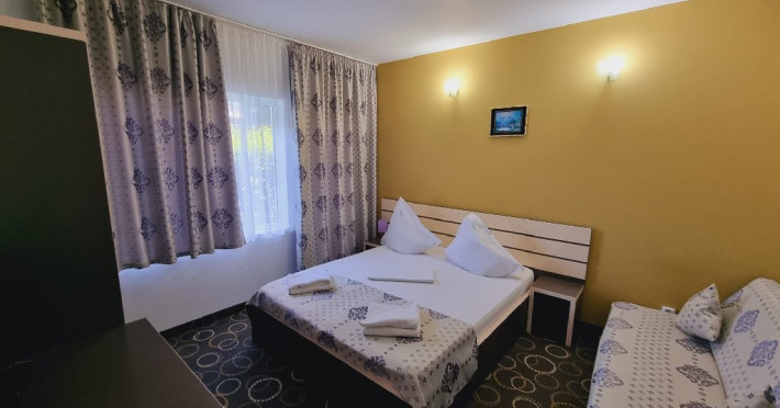 INFORMATII GENERALE Vila Pretty Woman este o vila moderna data in folosinta in vara anului 2008, clasificata la 3 stele. Este situata intr-o zona foarte linistita, fara vecinatati dubioase si aflata la o distanta de 10 minute facute la pas, de o splendida plaja cu nisip natural si fin si va pune la dispozitie camere spatioase, luminoase si dotate modern. In fata vilei este amenajata o gradina de 300mp cu gazon si plante incantatoare, in care va puteti relaxa, o bolta de vita de vie, pe una din laturi, la umbra careia sunt mese si bancute rustice, unde se poate lua masa sau servi o bere rece. Pe langa cazare, vila Pretty Woman mai pune la dispozitie turistilor o bucatarie comuna situata afara si dotata cu aragaz, frigider, vesela, microunde, prajitor de paine etc. Vila pune la dispozitie parcare privata. DESCRIERE CAMERE Structura de cazare: 24 locuri in 10 camere. Parter: 4 camere cu paturi matrimoniale dotate cu bai si cabine de dus, aer conditionat, TV LCD, frigider, balcon Etaj : 4 camere cu paturi matrimoniale, dotate cu bai si cabine de dus, aer conditionat, TV LCD, frigider, balcon Mansarda: 2 camere cu cate doua paturi matrimoniale/camere, dotate cu bai si cabine de dus, aer conditionat, TV LCD, frigider Toate camere dispun de: aer conditionat, TV cu ecran plat si canale prin cablu, precum si bai cu cabine de dus si articole de toaleta gratuite. Camerele dispun de balcon mobilat cu masa si doua scaune. Camerele de la mansarda nu au balcon. LOCALIZARE Se afla la 10 minute facute la pas, de o splendida plaja cu nisip natural si fin.