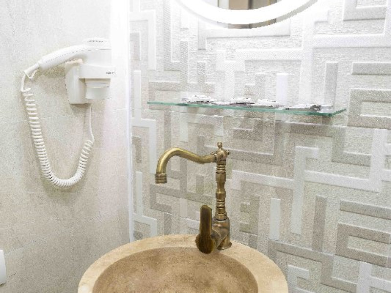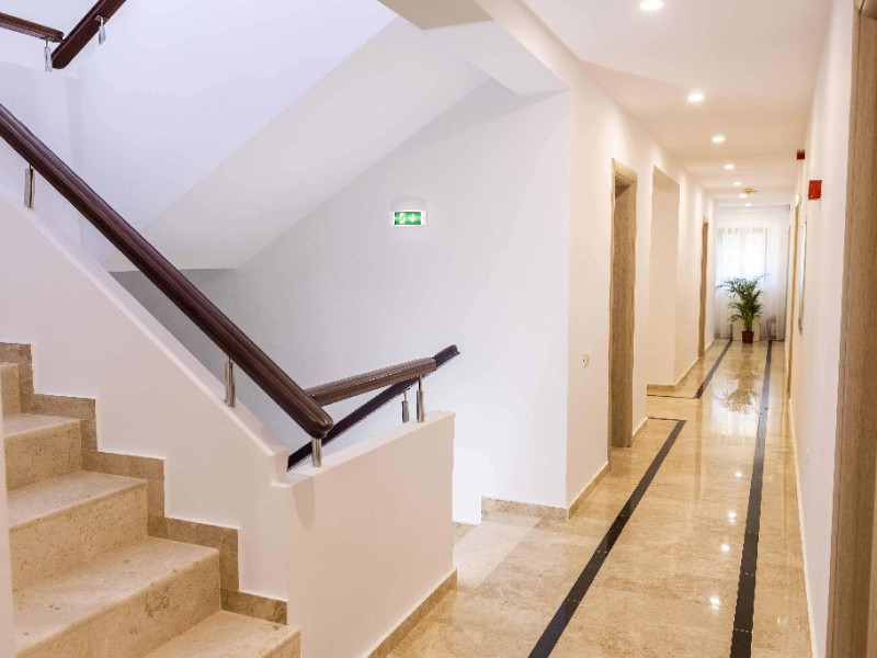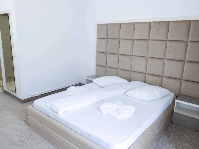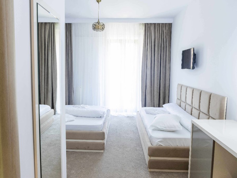 DESCRIERE CAMERE Dotari camere: aer conditionat, TV, frigider, baie cu dus, balcon -la 1 apartament si o parte din camerele duble, uscator de par, mobilier din lemn masiv, acces pe baza de card magnetic, telefon, pardoseala din gresie. Numar total camere: 29 Duble: 26 Apartamente: 3 - apartamentul este compus din living si dormitor.