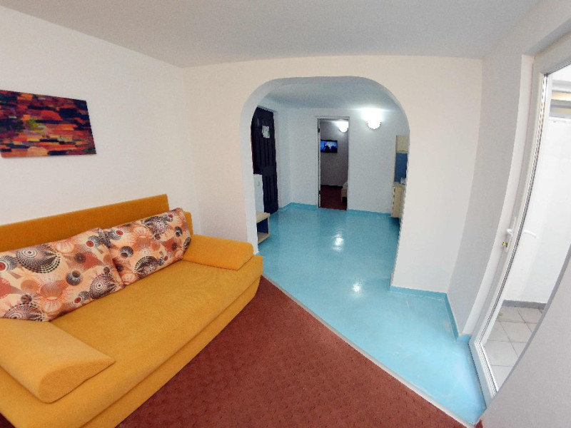 DESCRIERE CAMERE Apartamentele din cadrul Vilelor Liliacul Jupiter sunt formate din living, dormitor si baie. Living-ul cuprinde o canapea extensibila sau 2 fotolii extensibile, masuta pentru cafea, televizor cu televiziune prin cablu si frigider, plasa de tantari. Dormitorul este prevazut cu pat matrimonial, sifonier in 3 canate, oglinda si pardoseala acoperita cu mocheta. Toate baile sunt prevazute cu cabina de dus. Apartamentele situate la parter dispun de terasa cu masa si scaune, iar apartamentele amplasate la etaj sunt dotate cu aer conditionat.