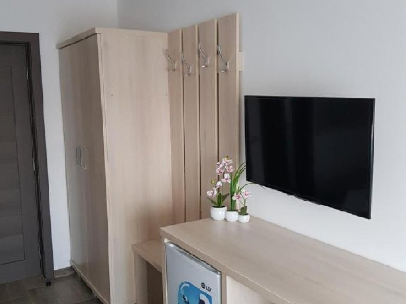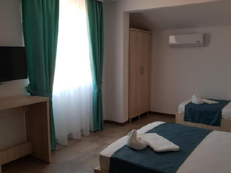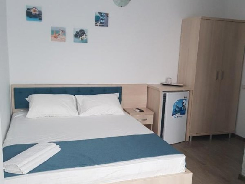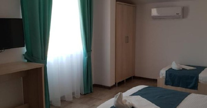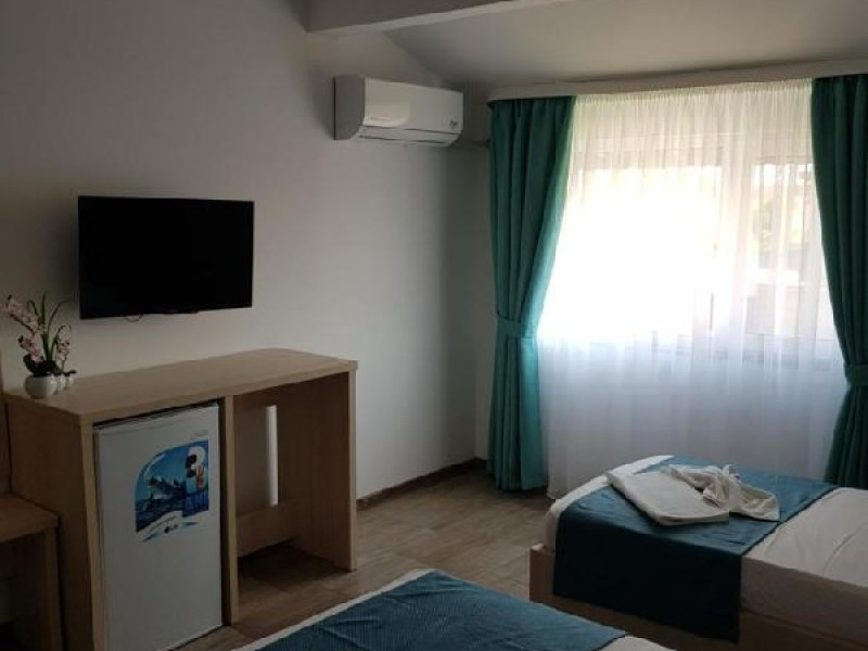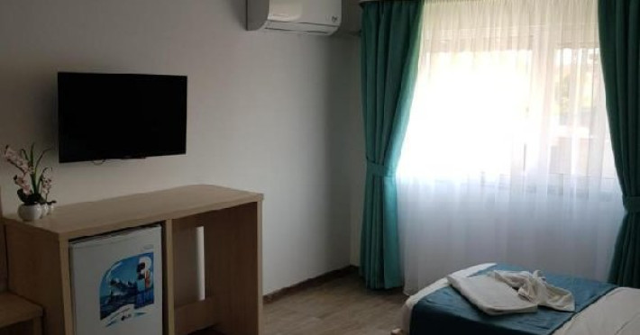 DESCRIERE CAMERE Dotari camere: baie proprie cu cabina de dus, aer conditionat, frigider, televizor LCD, wifi gratuit, produse de ingrijire personala si prosoape, iar pentru un maxim confort va punem la dispozitie cana fierbator, ceai si cafea instant din partea casei.