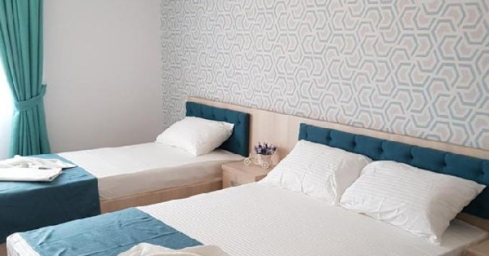 Camera tripla este dotata cu un pat matrimonial si un pat single. Suprafata vila: 20 mp. Capacitate maxima: 3 adulti + 1 copil maxim 6 ani.