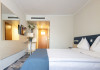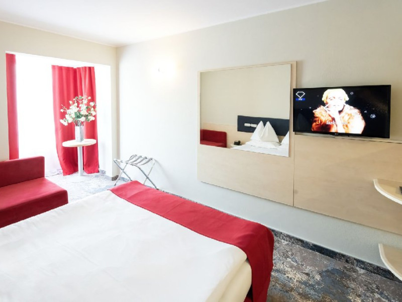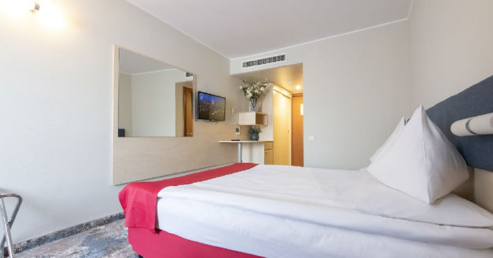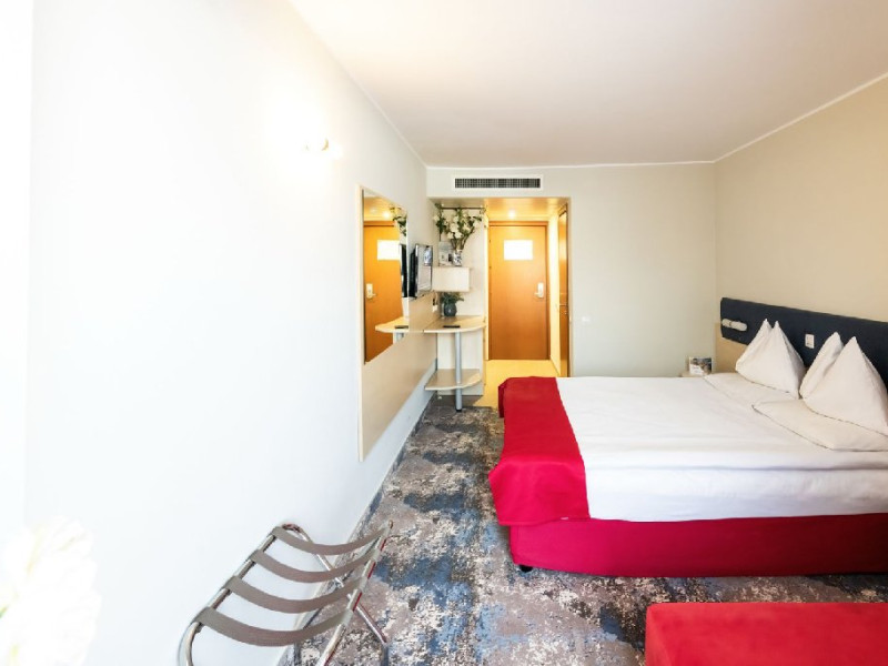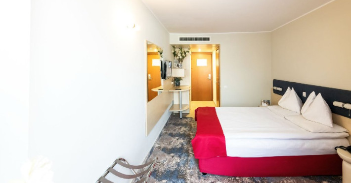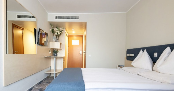 Camerele duble Jupiter/Junona - au suprafata totala de 21 mp (incluzand balcon si baie), au vedere spre statiune/parcare. Finisajele camerelor au fost refacute in 2024-2025 (mobilier, mocheta, draperii, renovare baie). Sunt dotate cu: balcon cu 2 scaune, pat matrimonial sau 2 paturi twin, bai cu cabina de dus si uscator de par, mocheta, mocheta pe hol, televizor LED, internet wireless, seif, 2 fotolii, masuta, minibar, aer conditionat, telefon, acces pe baza de card magnetic. Camerele duble Junior Jupiter/Junona - au in dotare in plus fata de cele standard, o canapea fixa, permitand cazarea a doi adulti si doi copii 0-6.99 ani. In acest tip de camere patul este matrimonial si nu au vedere la mare. Camerele au fost renovate intre 2019 si 2025. Sunt dotate cu baie cu cabina de dus, uscator de par si cosmetice hoteliere, papuci, mocheta, gresie in baie, balcon cu scaune si masa, televizor LED, internet wireless, masuta, minibar, aer conditionat, telefon, seif, acces pe baza de card magnetic. Camerele duble family Jupiter - cuprind un pat matrimonial si doua paturi suprapuse pentru copii, nu au vedere la mare si sunt pozitionate doar in corpul Jupiter. Paturile suprapuse sunt din lemn. Suprafata totala a camerei este de 21 mp, dintre care spatiu functional de 14 mp, hol de 3 mp, baie de 3 mp, balcon de 1 mp. Sunt dotate cu bai cu cabina de dus, uscator de par si cosmetice hoteliere, papuci, mocheta, gresie pe hol si in baie, balcon cu 2 scaune, televizor LED, internet wireless, seif, 2 fotolii, masuta, minibar, aer conditionat, telefon, acces pe baza de card magnetic. Camerele duble Jupiter/Junona cu vedere partiala la mare - au o suprafata totala de 21 mp (incluzand balcon si baie), au vedere partiala la mare. Dispun de balcon mare echipat cu doua scaune. Sunt dotate cu: pat matrimonial sau 2 paturi twin, bai cu cabina de dus, uscator de par si cosmetice hoteliere, papuci, mocheta, gresie pe hol si in baie, televizor LED, internet wireless, seif, 2 fotolii, masuta, minibar, aer conditionat, telefon, acces pe baza de card magnetic. Camerele duble Junior cu vedere partiala la mare Jupiter/Junona - au in dotare pat matrimonial, o canapea fixa, au vedere partiala la mare. Sunt dotate cu: bai cu cabina de dus, uscator de par si cosmetice hoteliere, papuci, mocheta, gresie pe hol si in baie, balcon cu 2 scaune, televizor LED, internet wireless, seif, masuta, minibar, aer conditionat, telefon, acces pe baza de card magnetic. Camerele duble cu vedere frontala la mare Junona au o suprafata totala de 21 mp (incluzand balcon si baie), au vedere la mare. Dispun de balcon mare echipat cu doua scaune. Sunt dotate cu: pat matrimonial sau 2 paturi twin, bai cu cabina de dus, uscator de par si cosmetice hoteliere, papuci, mocheta, gresie pe hol si in baie, televizor LED, internet wireless, seif, 2 fotolii, masuta, minibar, aer conditionat, telefon, acces pe baza de card magnetic. Camerele duble Junior cu vedere frontala la mare Junona - au in dotare pat matrimonial, o canapea fixa, au vedere la mare. Sunt dotate cu bai cu cabina de dus, uscator de par si cosmetice hoteliere, papuci, mocheta, gresie pe hol si in baie, balcon cu 2 scaune, televizor LED, internet wireless, seif, 2 fotolii, masuta, minibar, aer conditionat, telefon, acces pe baza de card magnetic. Apartamentele superior cu vedere frontala la mare Junona - au o suprafata de 40 mp, distribuiti intr-un dormitor de 12 mp cu pat matrimonial, living de 11 mp cu canapea extensibila, o baie cu cada, o baie de serviciu, hol si balcon. Au TV cu LED atat in dormitor cat si in living. Se pot caza 3 adulti si un copil maxim 12 ani, sau doi adulti cu doi copii de 0-17.99 ani, ori 4 adulti. Sunt situate in corpul Junona, la etajul 4, oferind o panorama deosebita a imprejurimilor. Oaspetii care achizitioneaza acest tip de camera beneficiaza de gratuitate la salina si sauna in centrul SPA.