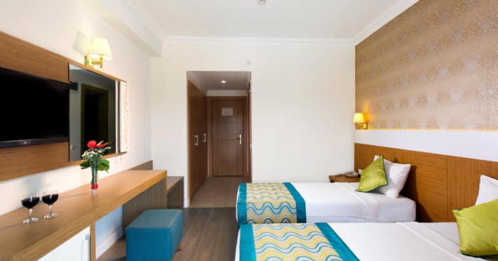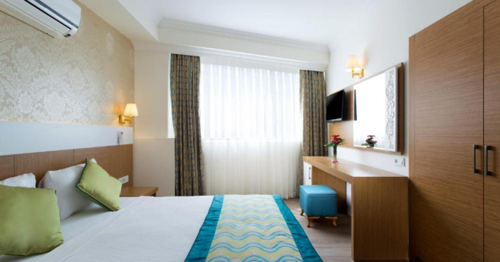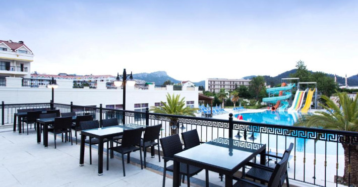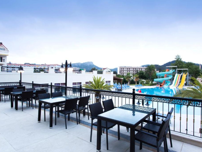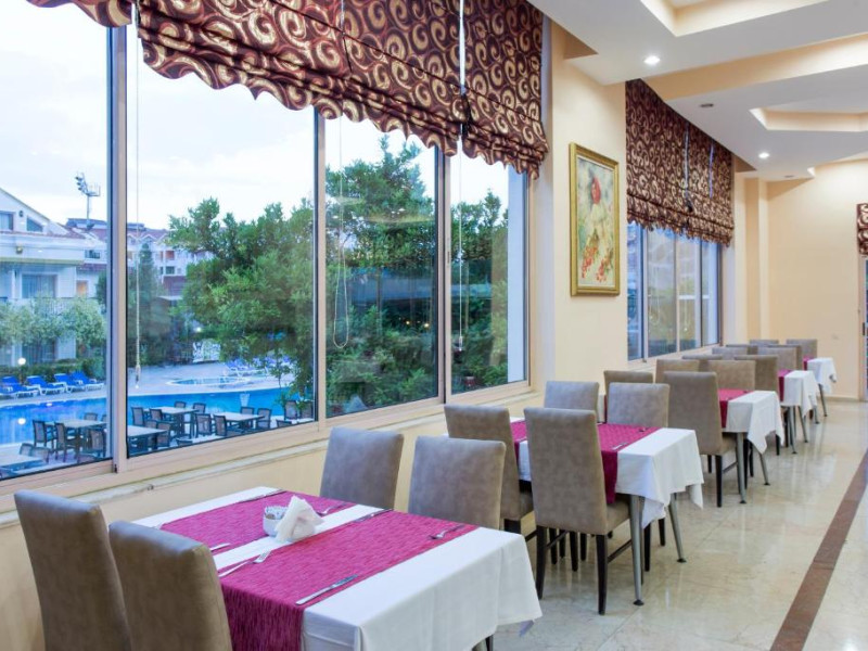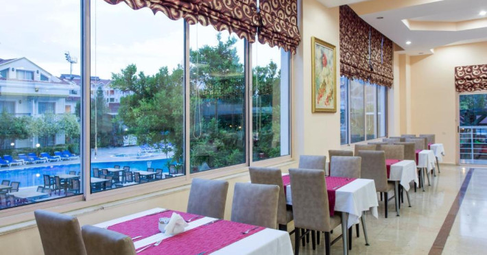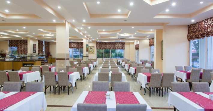 Restaurantul principal servește preparate din bucătăria turcească și internațională in sistem bufet, iar barul de la piscină oferă răcoritoare și cocktailuri pe tot parcursul zilei. Pentru momentele active, hotelul pune la dispoziție teren de tenis și sală de fitness.