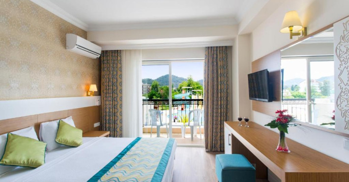 Camerele luminoase și confortabile sunt dotate cu aer condiționat, TV prin satelit și balcon. Oaspeții se pot bucura de piscina exterioară inconjurată de șezlonguri și umbrele, precum și de piscina pentru copii.