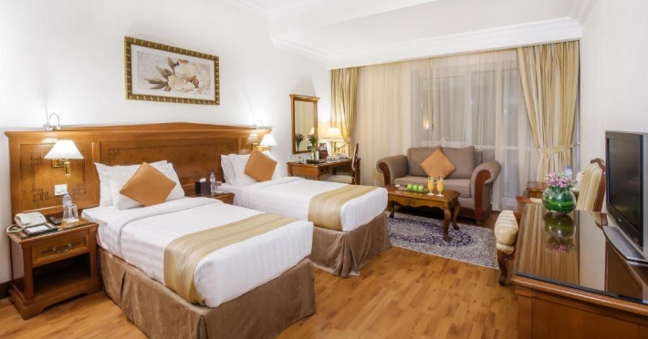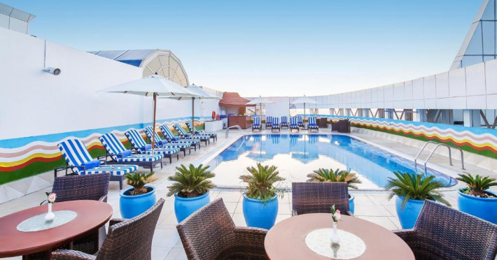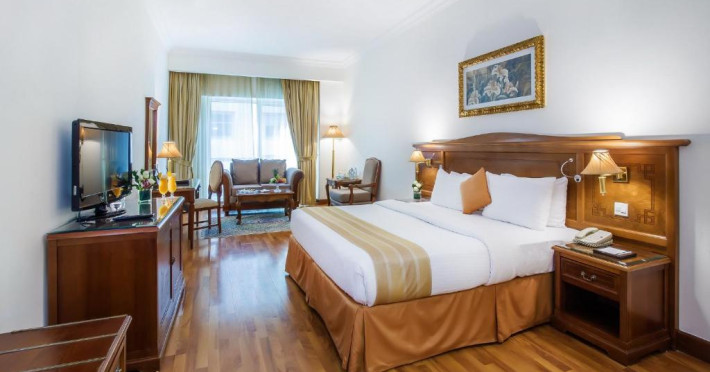 Hotelul elegant Grand Excelsior - Bur Dubai se află in Bur Dubai, la doar cateva minute de World Trade Centre. Este prevăzut cu 8 restaurante, spa mare și piscină pe acoperiș.