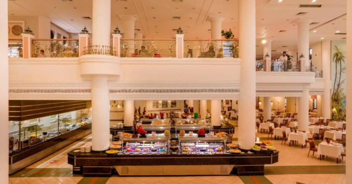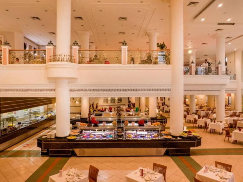 Locurile unde se poate lua masa cuprind un bar și un lobby bar. Clienții vor găsi bucate delicioase in cele 3 restaurante de nefumători cu aer condiționat. Băuturile răcoritoare de la barul de pe plajă creează momente minunate. Se oferă spre rezervare regim all inclusive. Un bufet delicios și bogat iși așteaptă clienții la micul dejun, pranz și cină. La cerere pot fi pregătite feluri de mancare dietetice, feluri de mancare vegetariene și mancare halal. De asemenea, resortul pune la dispoziție gustări. Locul de cazare oferă un sortiment de băuturi alcoolice și nealcoolice.