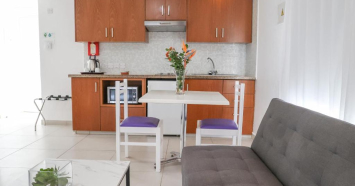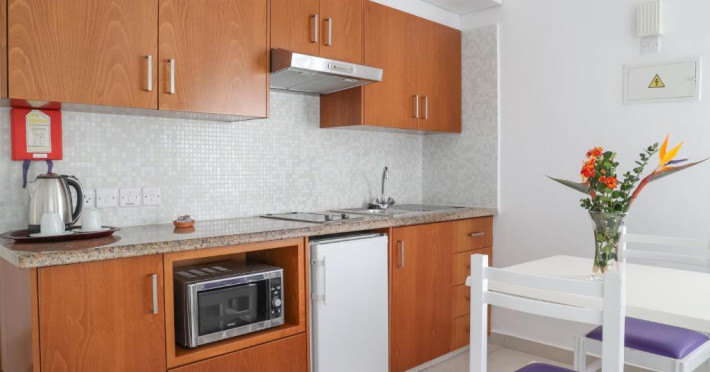 Camerele de la Alva Hotel Apartments au balcon, chicinetă cu cuptor cu microunde și baie privată. Unele camere includ și o zonă separată de relaxare și de luat masa.