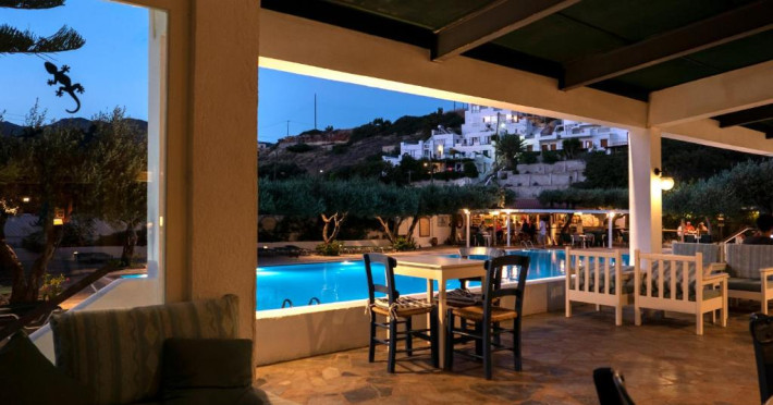 Villea Village se află in Makry Gialos și oferă vedere la munte, un restaurant, un lounge comun, un bar, o grădină, o zonă in aer liber sezonieră și o terasă. Oaspeții WiFi gratuit in proprietatea.